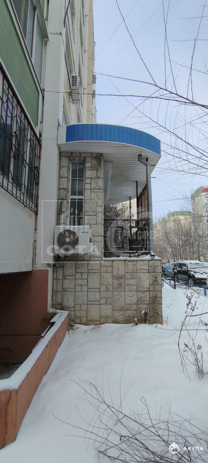 Помещение расположено на первом этаже 10-этажного жилого дома в спальной части Северного района Воронежа.