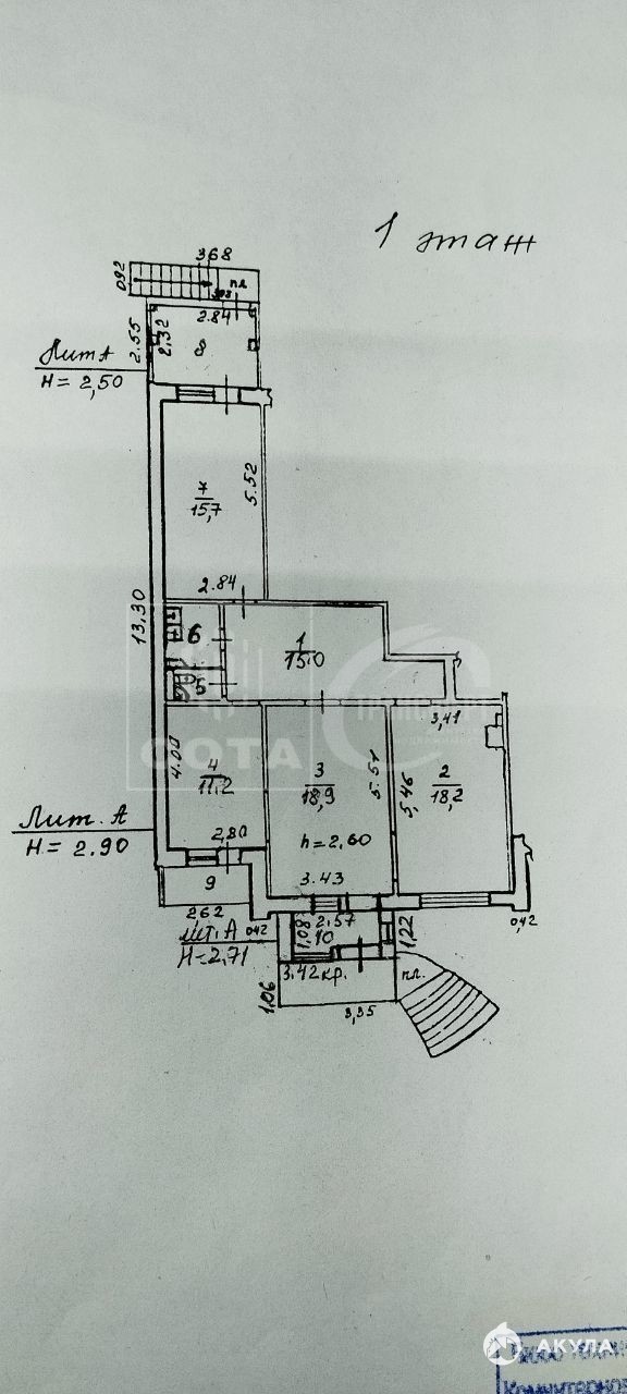 Планировка открытая: 4 отдельных комнаты, а также все необходимые коммуникации: электричество, водоснабжение, отопление, мокрая точка, сан узел, кондиционирование, складское помещение, тамбур и лоджия. Имеется охранная сигнализация.