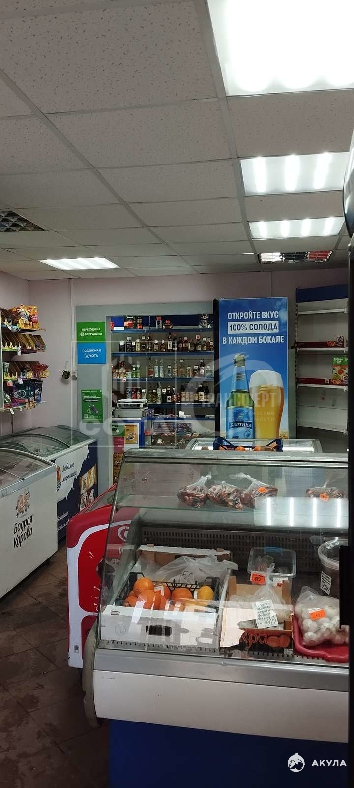 В данный момент помещение используется как продуктовый магазин и вы можете взять его полностью в аренду как магазин.