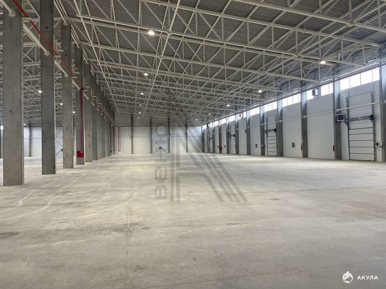 общая площадь 5 192, 2 м.кв (96х54 м, высота до ферм 8 м, до конька 10 м): 5000 кв.м склад и 192, 2 кв.м административно-бытовой комплекс (включают в себя кабинеты, раздевалки, душевые, санузлы).