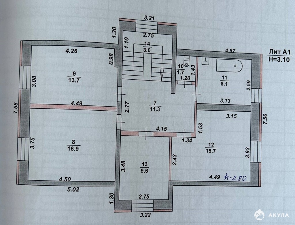 • Общая площадь: 221, 1 кв.м (отапливаемая — 187, 2 кв.м).