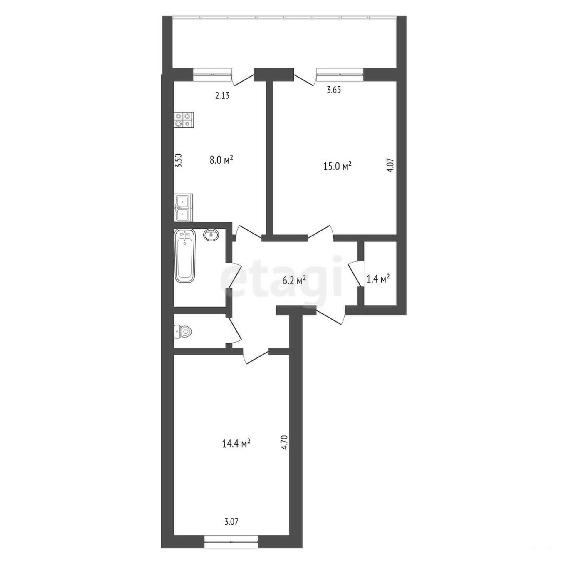 — Комнаты: 15 м² и 14, 4 м², непроходные
