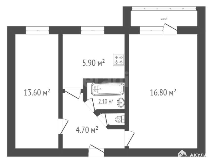 Двухкомнатная квартира общей площадью 44, 1 кв. м расположена на втором этаже в Юго-Восточном микрорайоне.