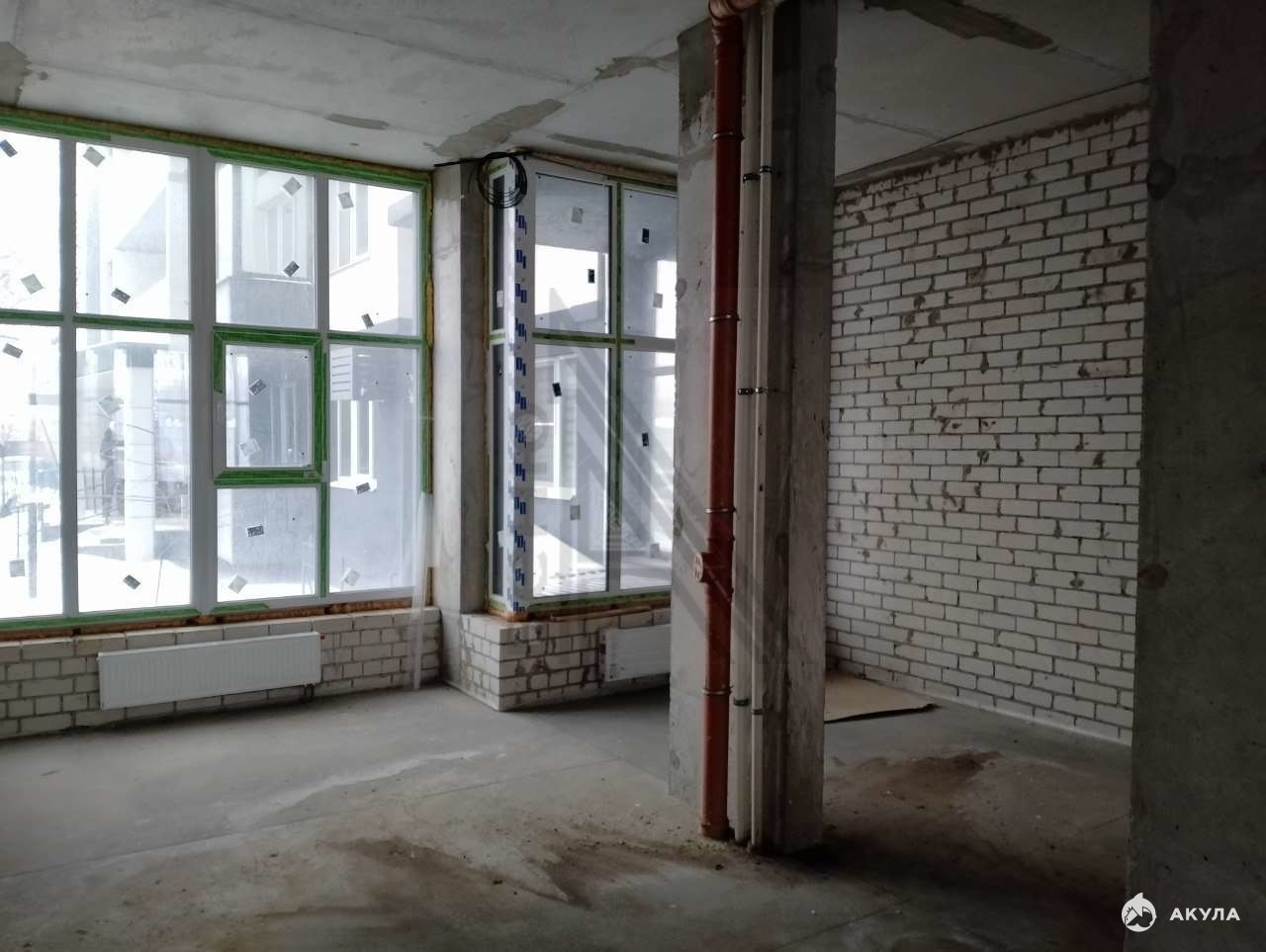 Выполнена стяжка пола, заведено электричество