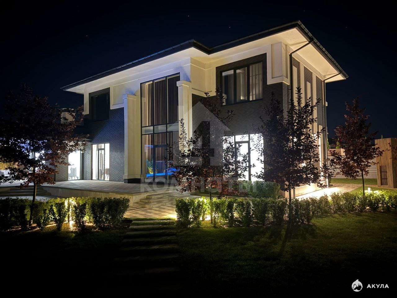 • Участок с ландшафтным дизайном: детская площадка, беседка, газон, дорожки, бассейн, кустарники и деревья – всё для вашего комфорта и удовольствия.