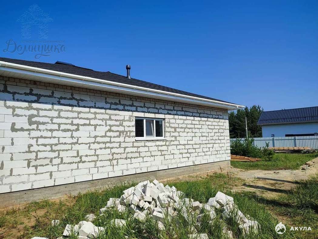 Стены выполнены из качественного блока профессиональной строительной бригадой. Высота потолков 3 метра. Дом 100 кв.м. на свайно-ростверковом фундаменте, установлены качественные пластиковые окна. Крыша - мягкая кровля. Своя скважина, вода и электричество заведены в дом.