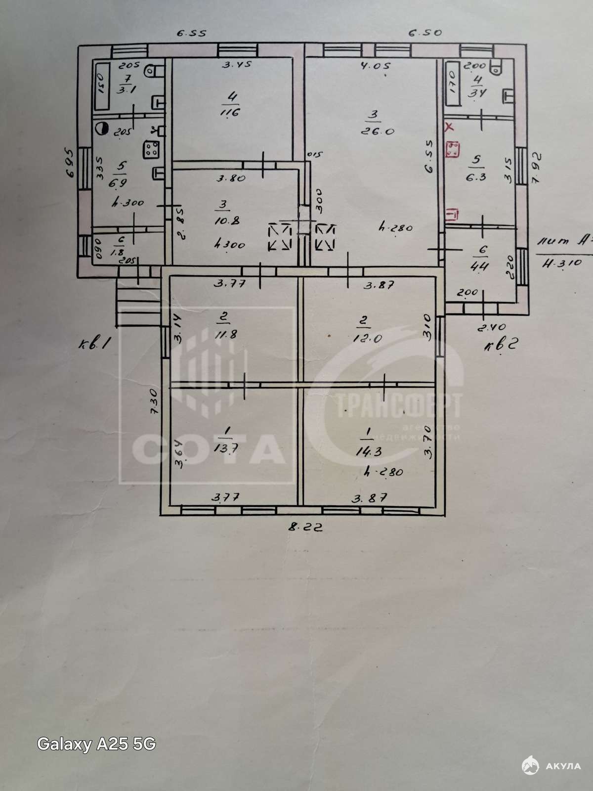 В доме шесть жилых комнат.