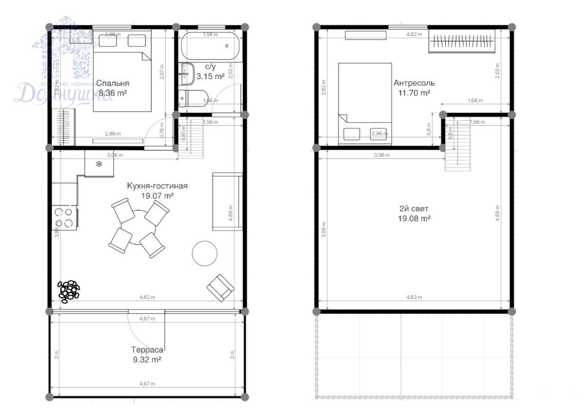 - 19.00 м²