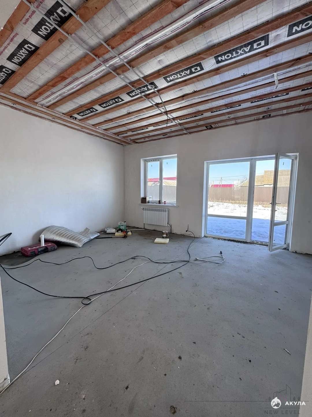 Стяжка пола, штукатурка стен, отопление, электрика.