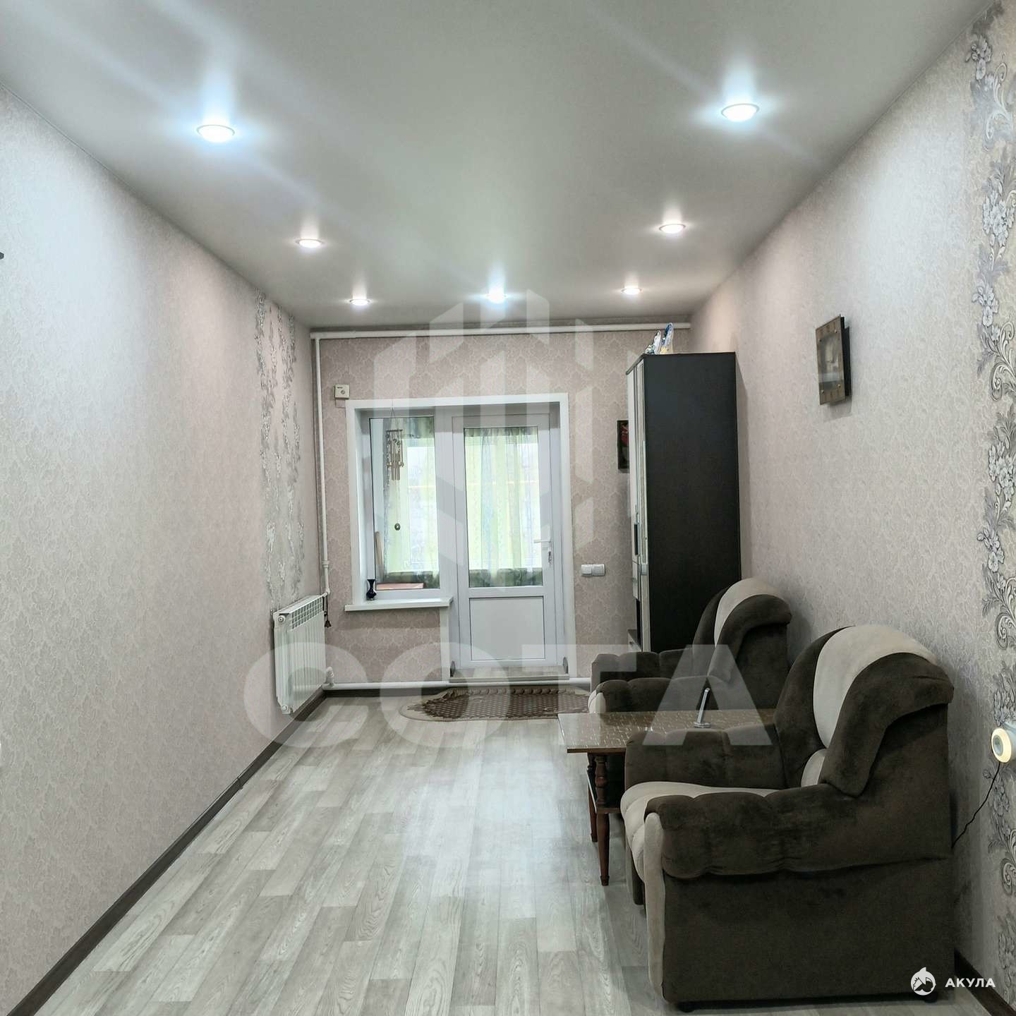 одна комната и везде выложен чистовой пол, на который только остается