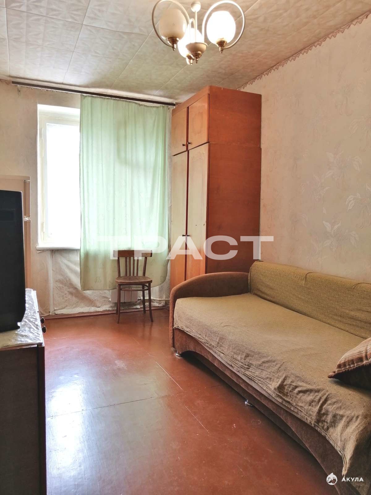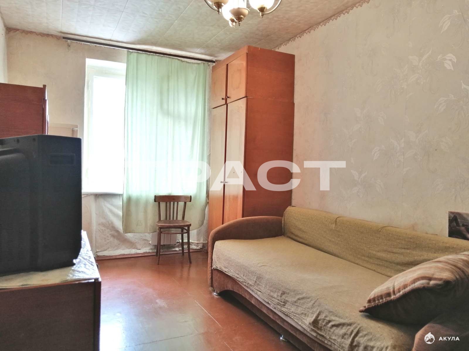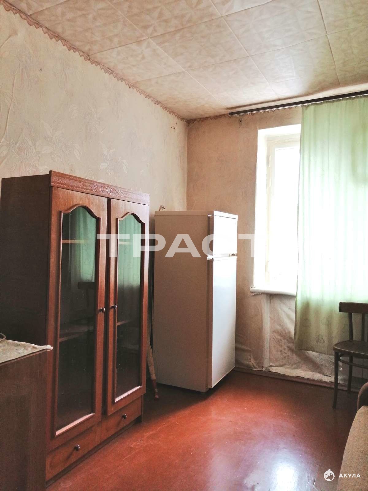 В комнате входная металлическая дверь. Мебель и техника остаётся будущему покупателю.