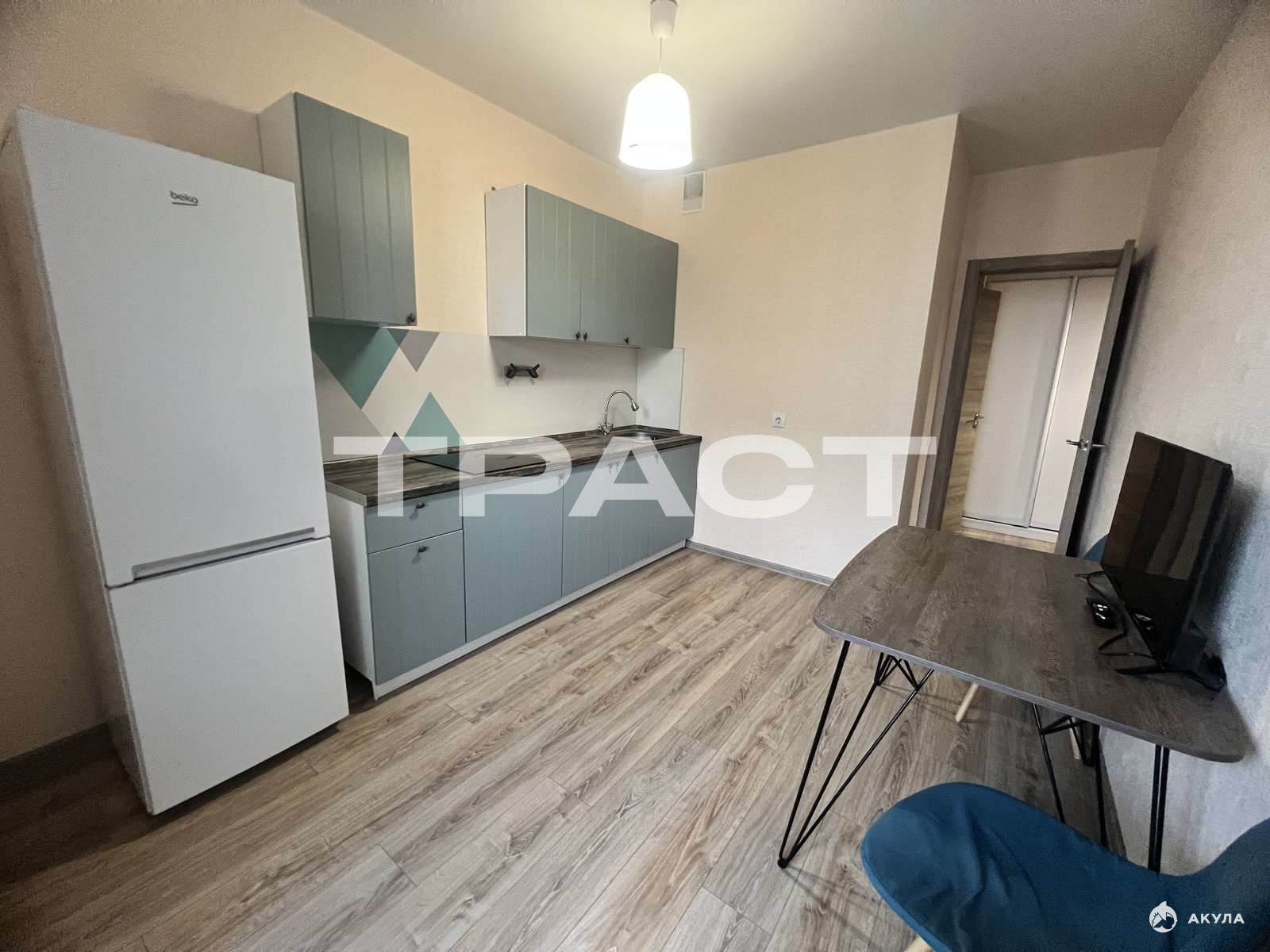 Удачная планировка, комната правильной формы, просторная кухня с выходом на лоджию, есть ниша для гардеробной. Качественный ремонт от застройщика.
