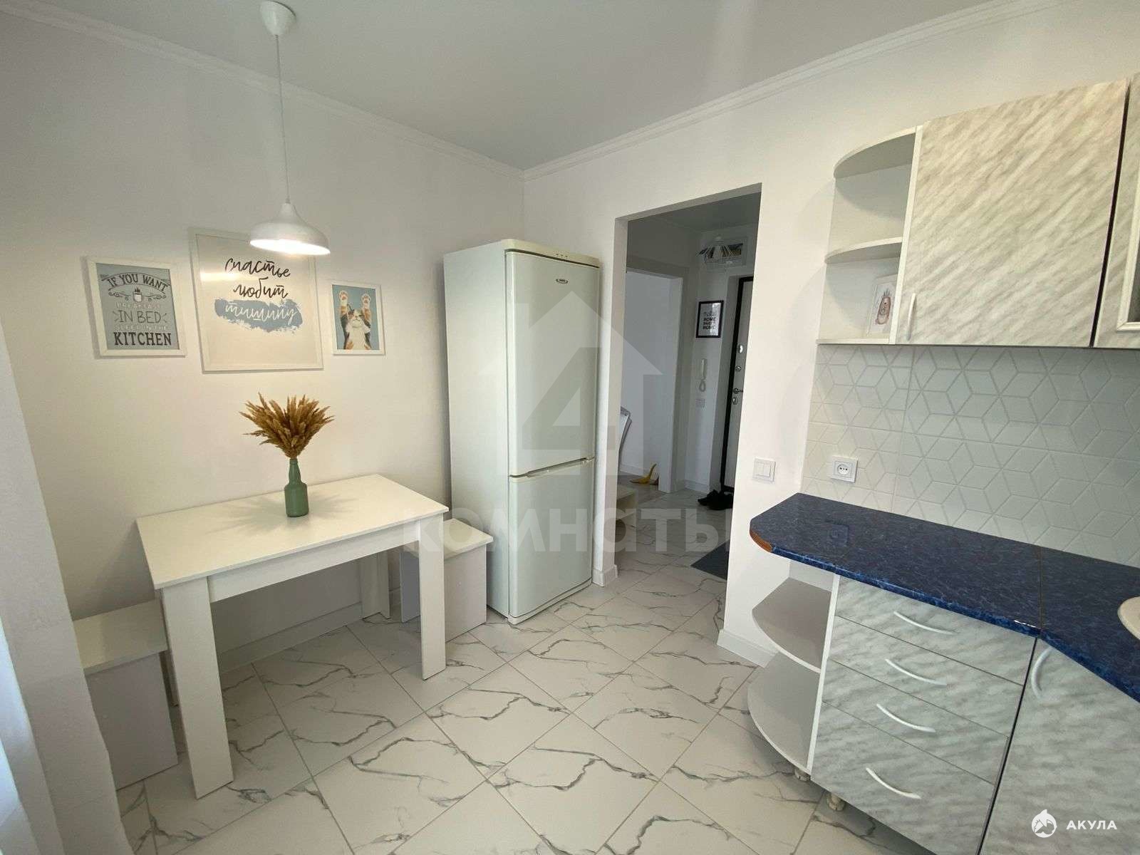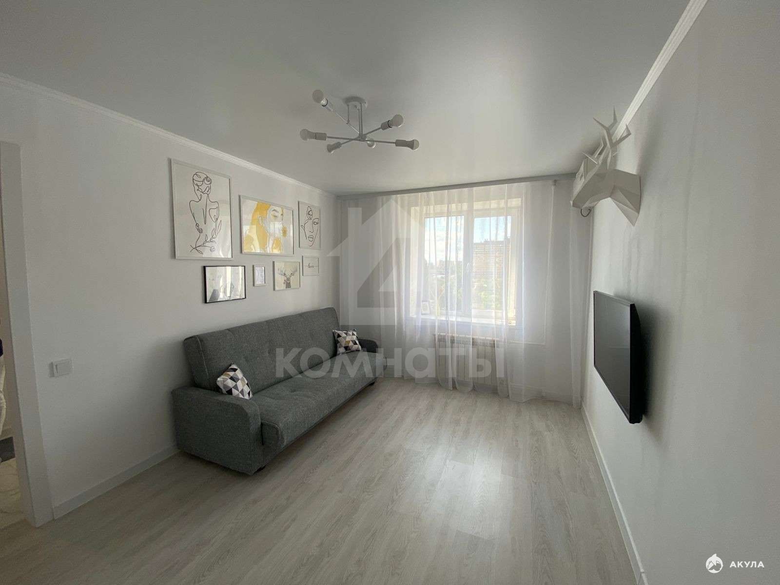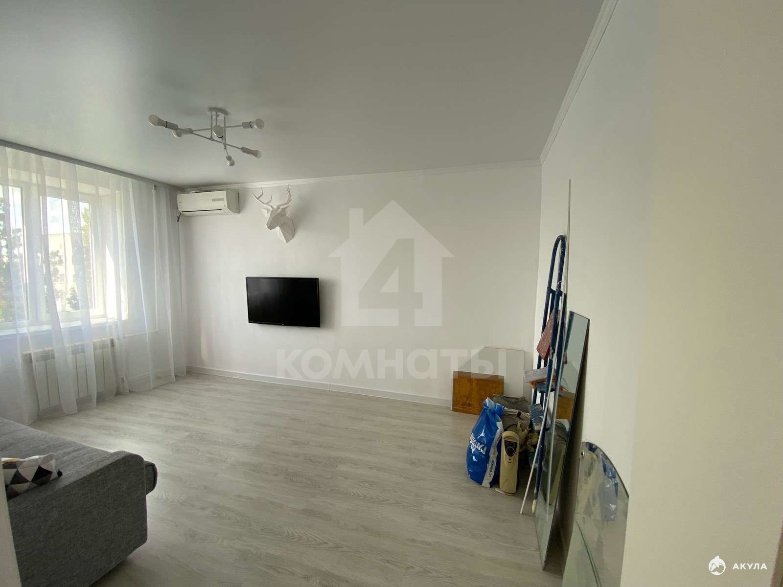В квартире недавно сделан дизайнерский ремонт в светлых тонах. Стены окрашены белой моющейся краской, а полы в коридоре и на кухне - плитка, в жилой комнате - ламинат. Санузел находится в идеальном состоянии, а также в нем установлена мощная вытяжка. Заменены трубы водоснабжения. Балкон застеклен и дополнительно утеплен.