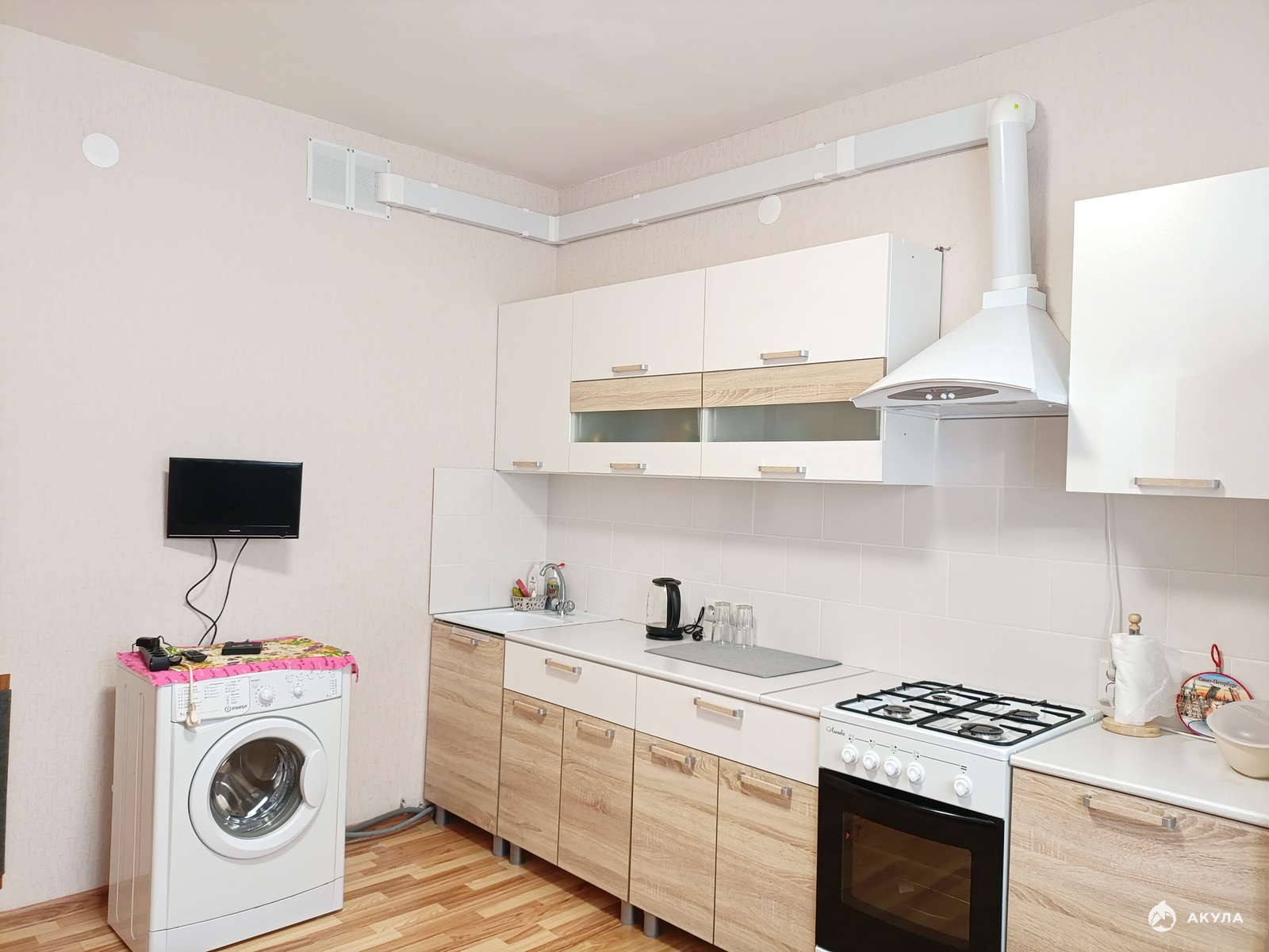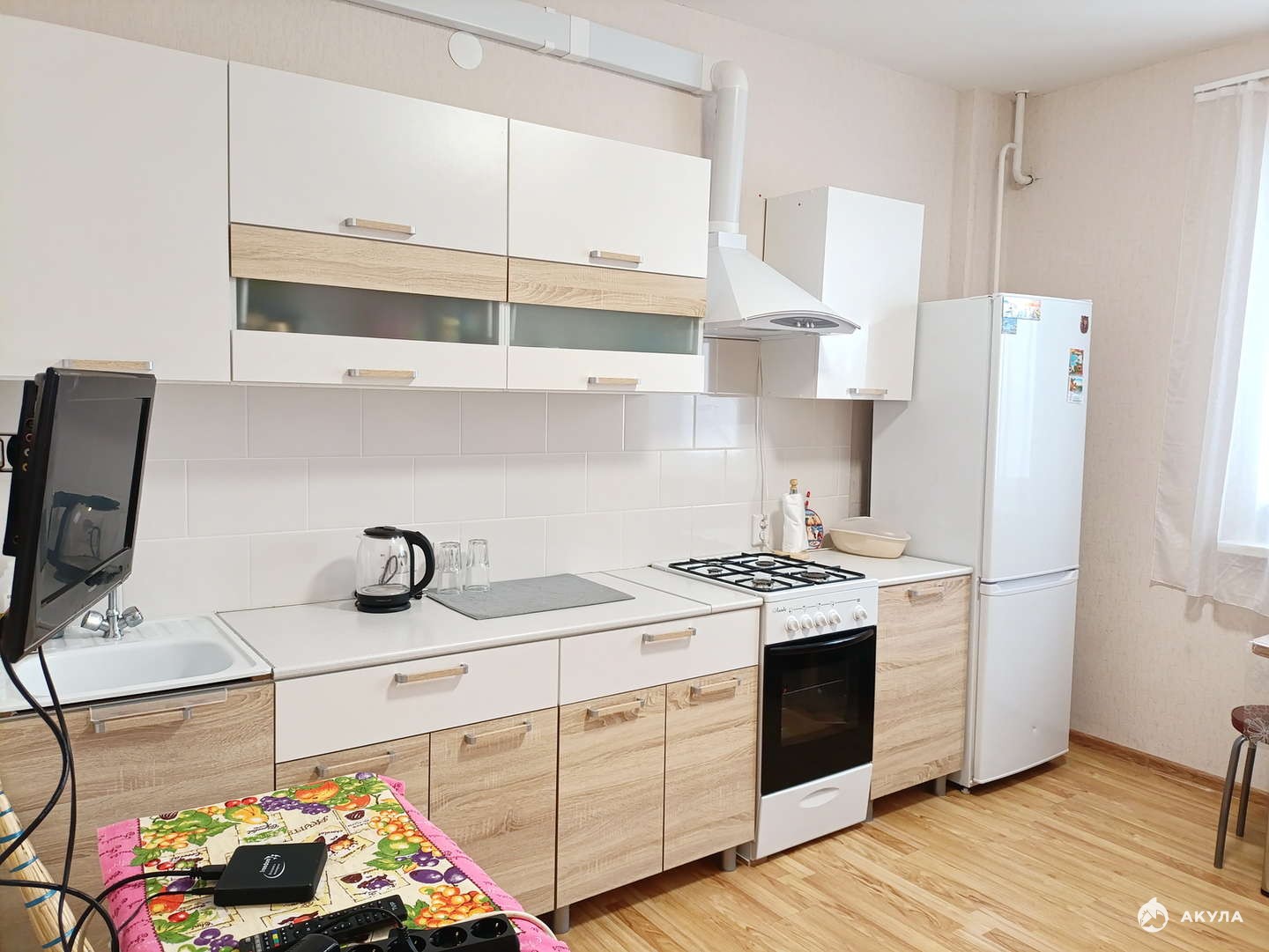 В квартире остается вся мебель и бытовая техника на кухне (за исключением дивана и маленького телевизора); полностью мебель в прихожей; шкаф и мебельная стенка в комнате.