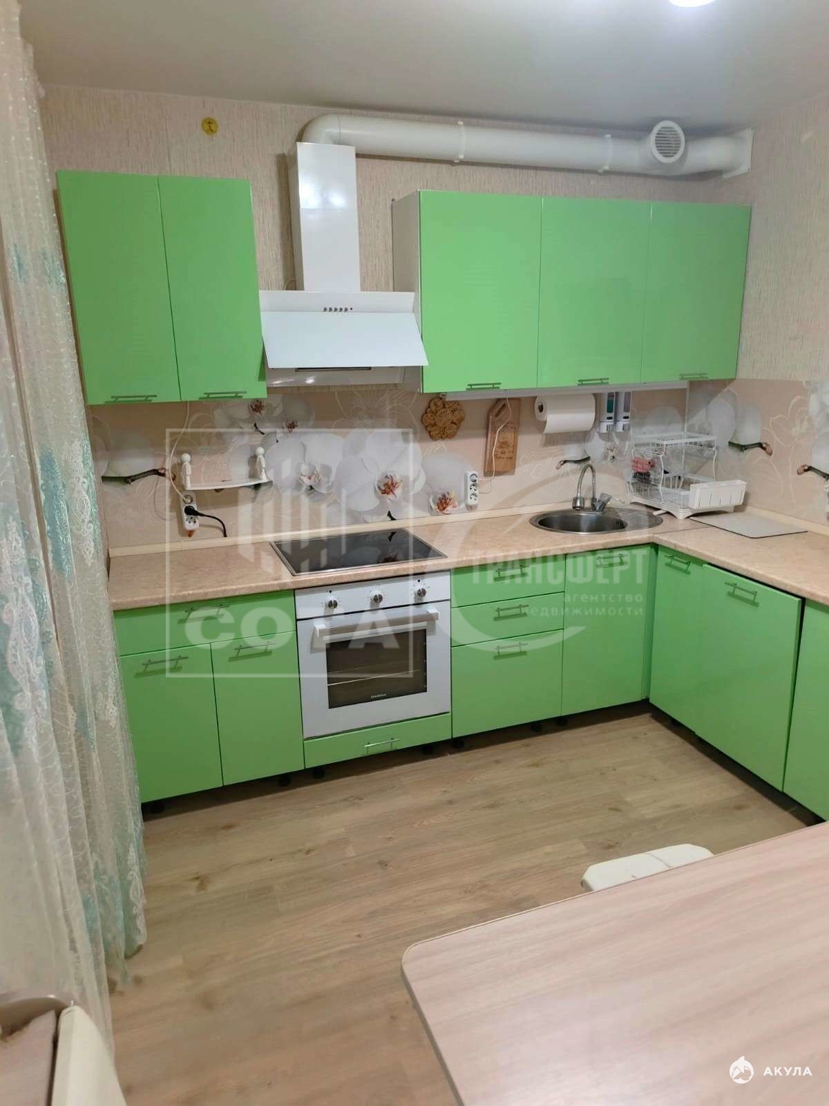 В квартире остаётся кухонный гарнитур с варочной панелью, вытяжка, кондиционер, новый бойлер.