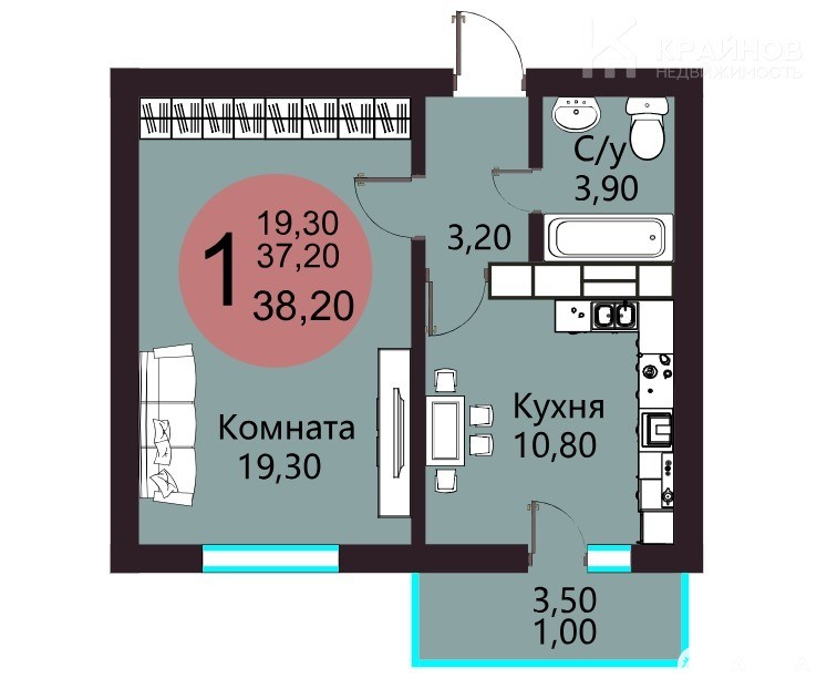 - 38 м²