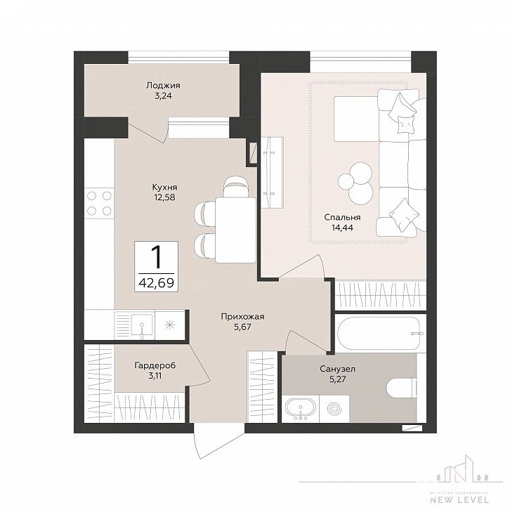 - 43 м²