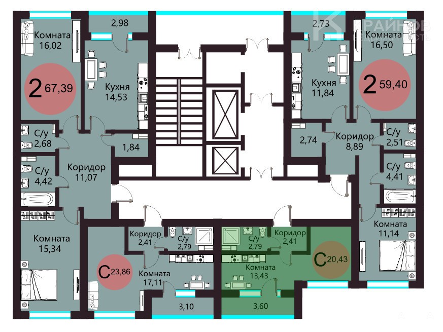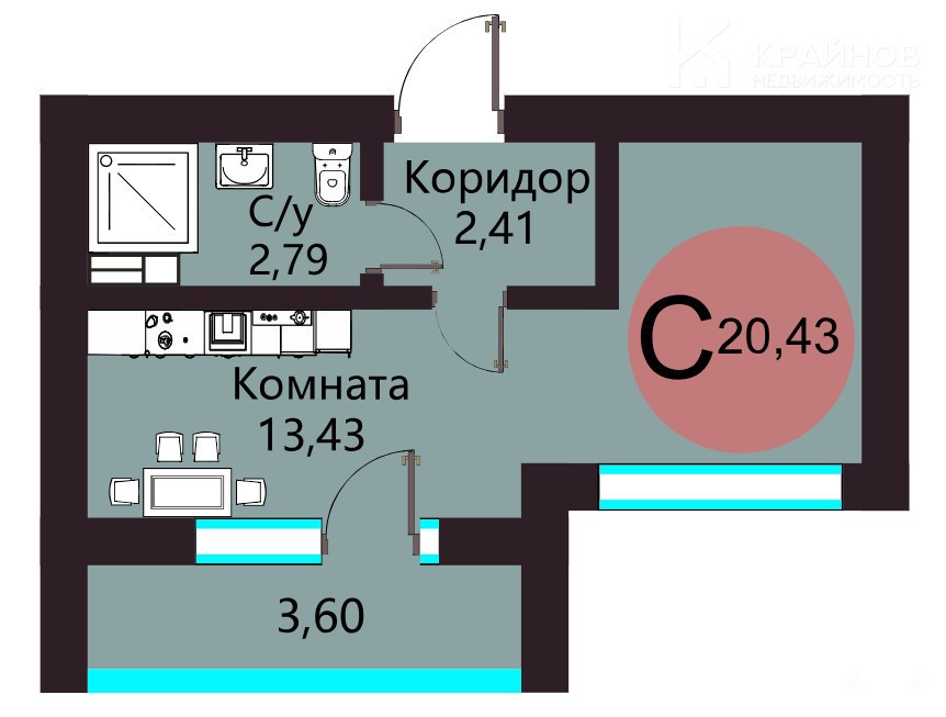 - 13.43 м²