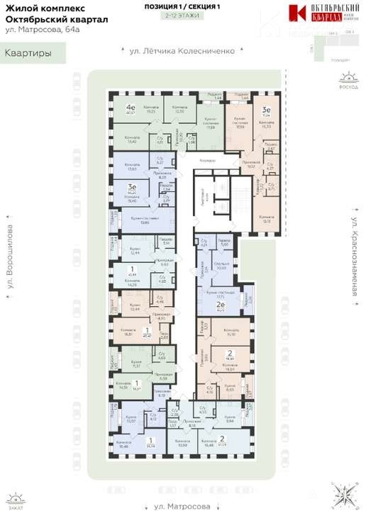 ЖК расположен на ул. Матросова, 64а — в районе, стремительно меняющем свой облик. Уже сейчас открылась новая школа №108, а совсем скоро начнется строительство детского сада на территории жилого комплекса. Здесь проходит большое количество маршрутов общественного транспорта, что обеспечивает комфортный доступ в любую точку города. На автомобиле время в пути до центральной части города займет около 15 минут.