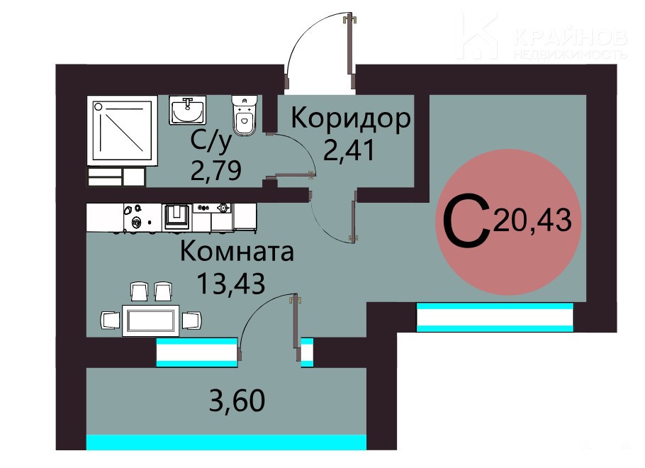ПРОДАЕТСЯ СТИЛЬНАЯ СТУДИЯ 24 кв.м С ПРОДУМАННОЙ ПЛАНИРОВКОЙ.