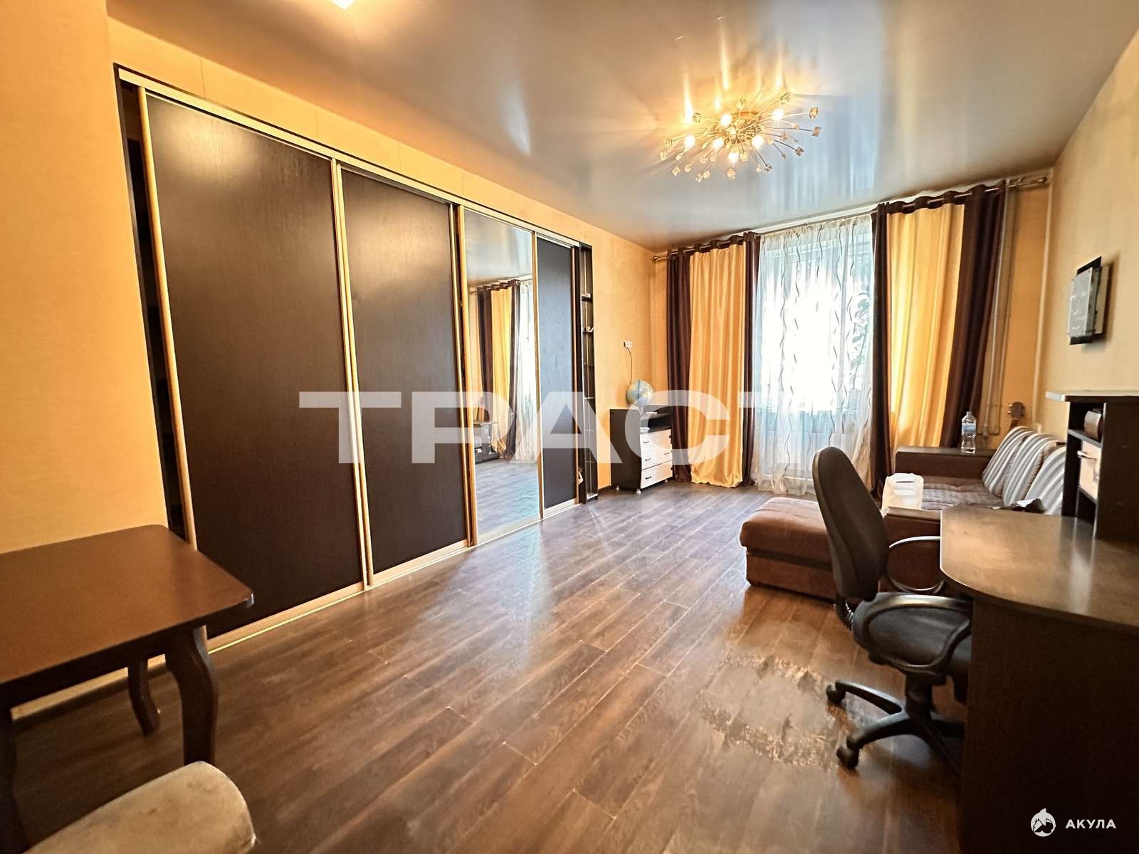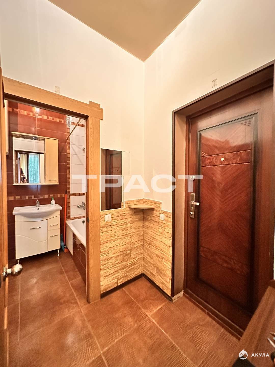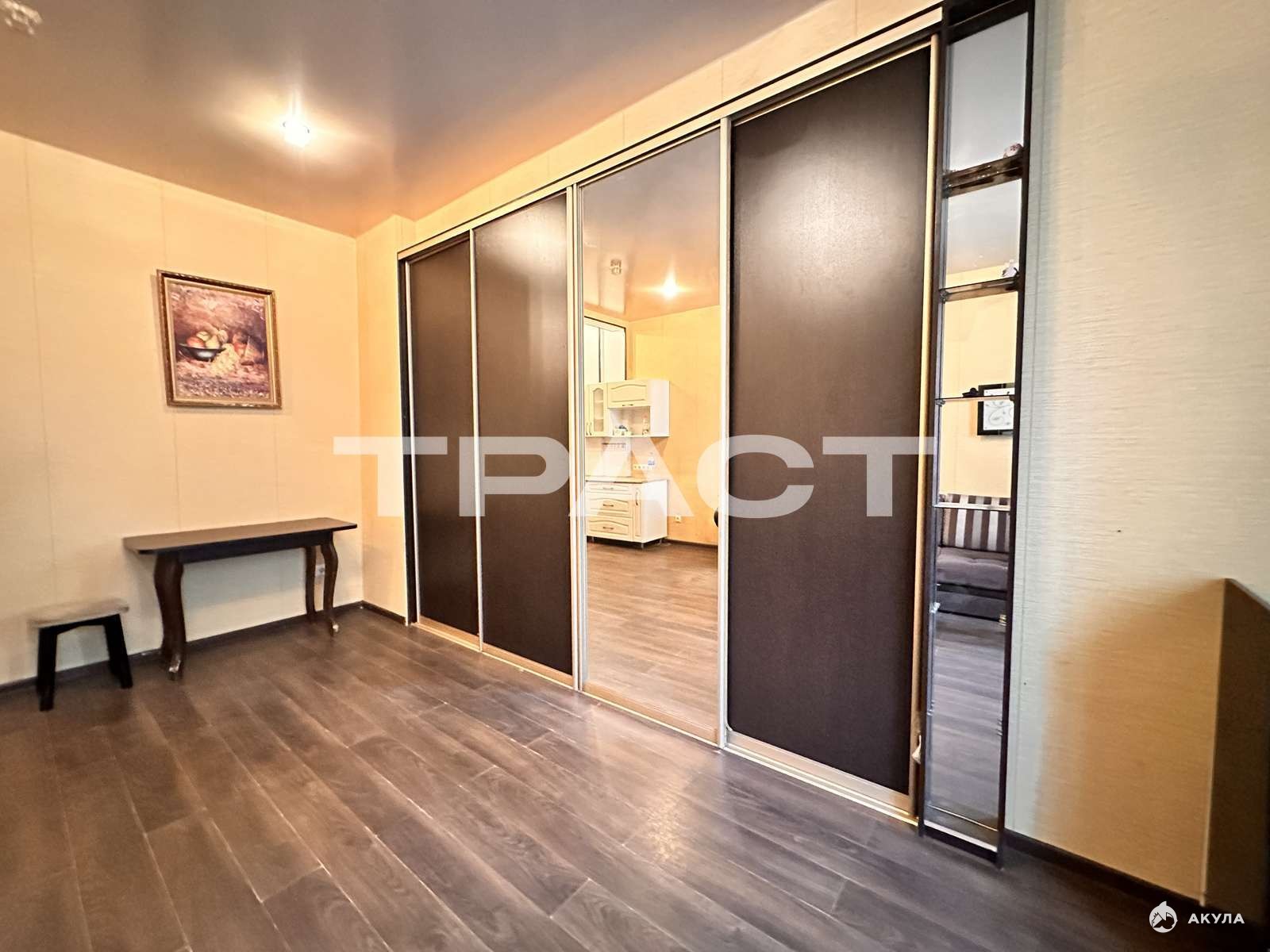 Удобная планировка:** * **Большая система хранения:** Встроенный шкаф-купе во всю стену места хватит для всего! * **Санузел:** Полностью отделан плиткой (кафель), чистый и ухоженный. * **Кухня:** Полноценная, удобная и функциональная. Приготовление еды в удовольствие.