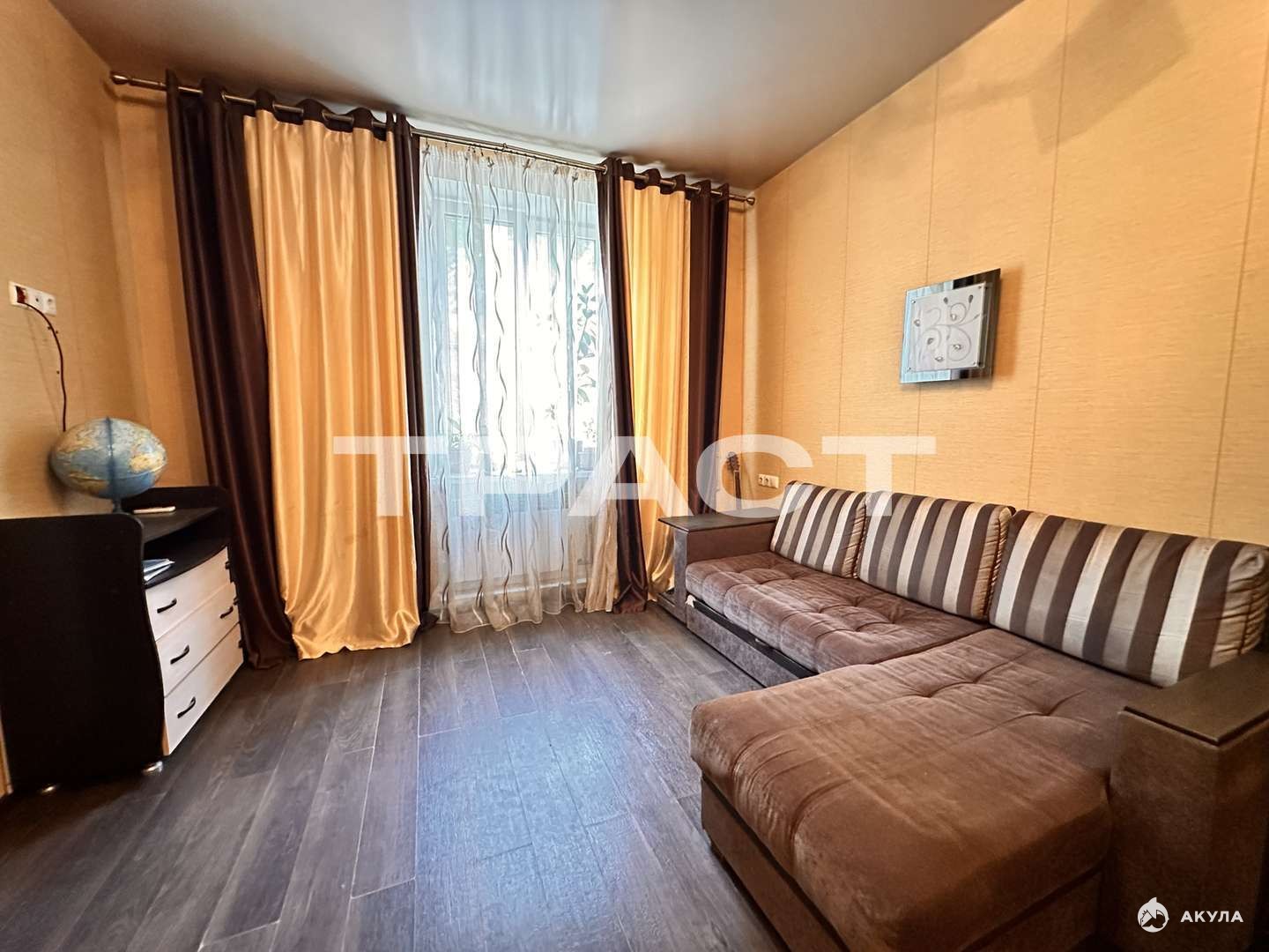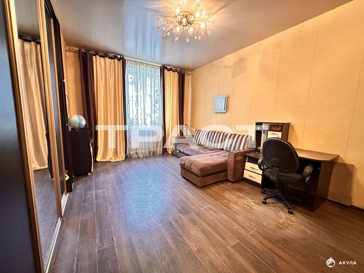 Отличный ремонт:** Выполнен качественно и со вкусом: * Пол: практичный и стильный ламинат. * Стены: свежие, аккуратные обои. * Потолки: натяжные.