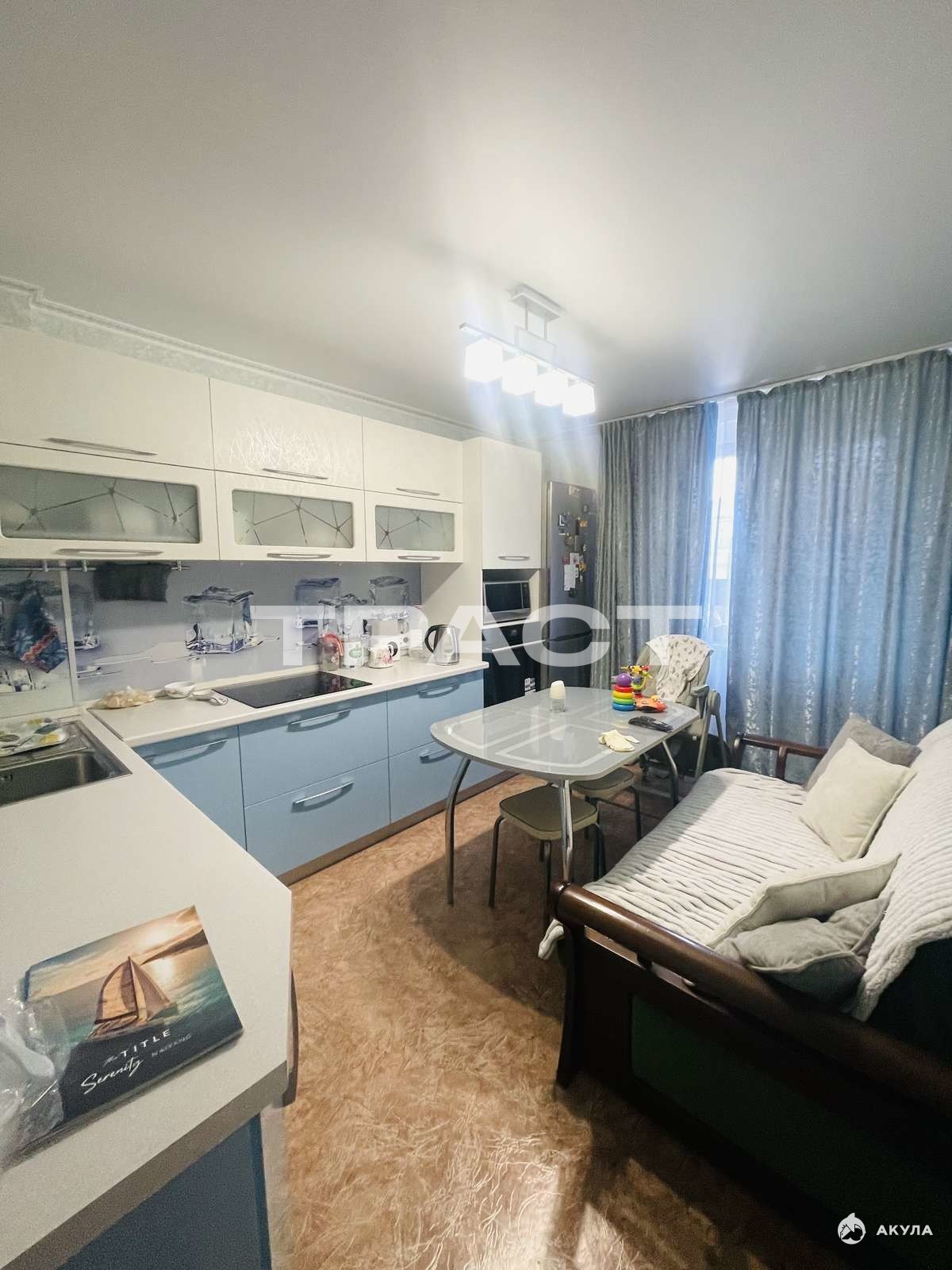 · Кухонный гарнитур (остаётся). · Керамическая плитка в санузле. · Тёплая, не угловая квартира. · Просторная лоджия на всю квартиру с двумя выходами -для обустройства дополнительной зоны.