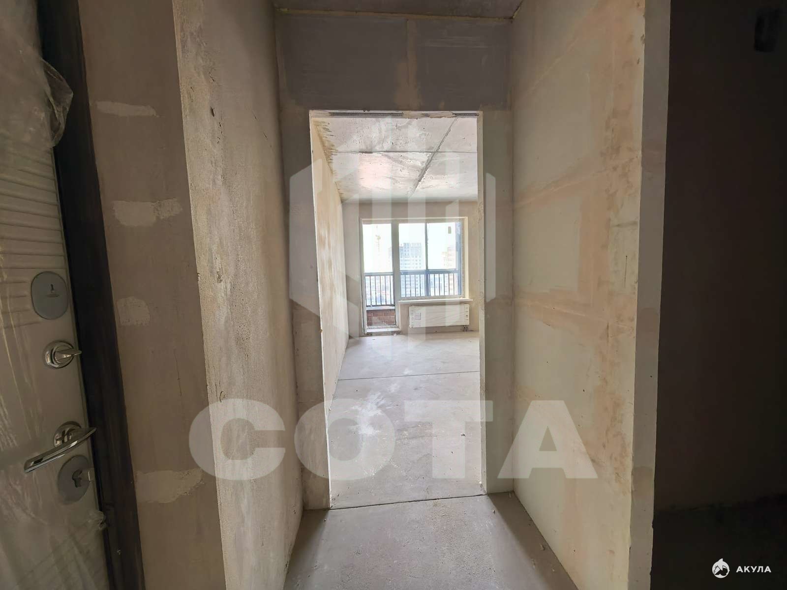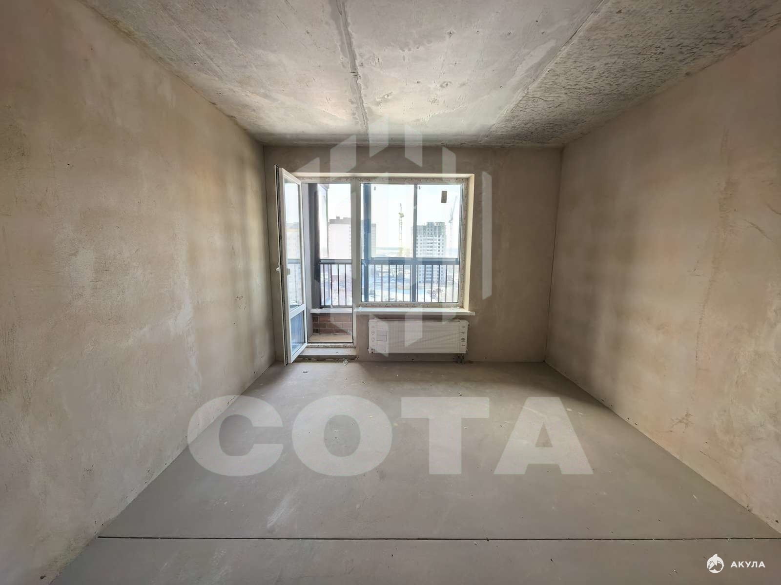 Черновая отделка — отличная возможность сделать ремонт под себя. Балкон с прекрасным видом на город.