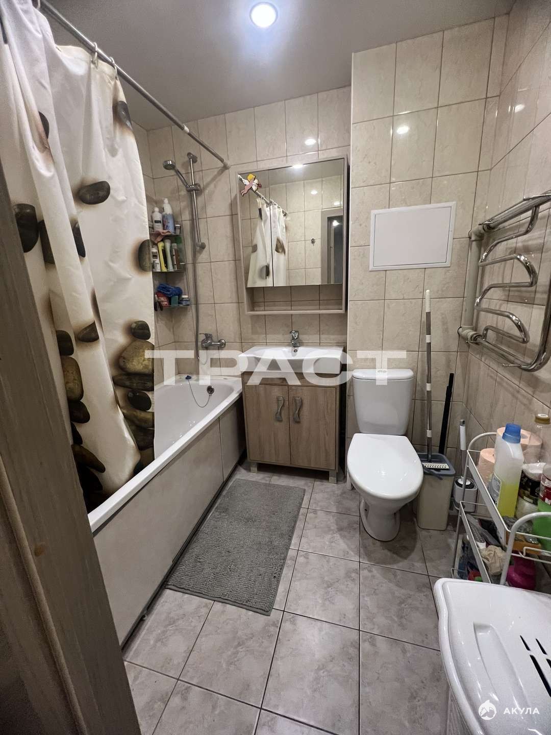 В квартире хороший ремонт: натяжной потолок, санузел в кафеле, на полу ламинат, хорошие межкомнатные двери.