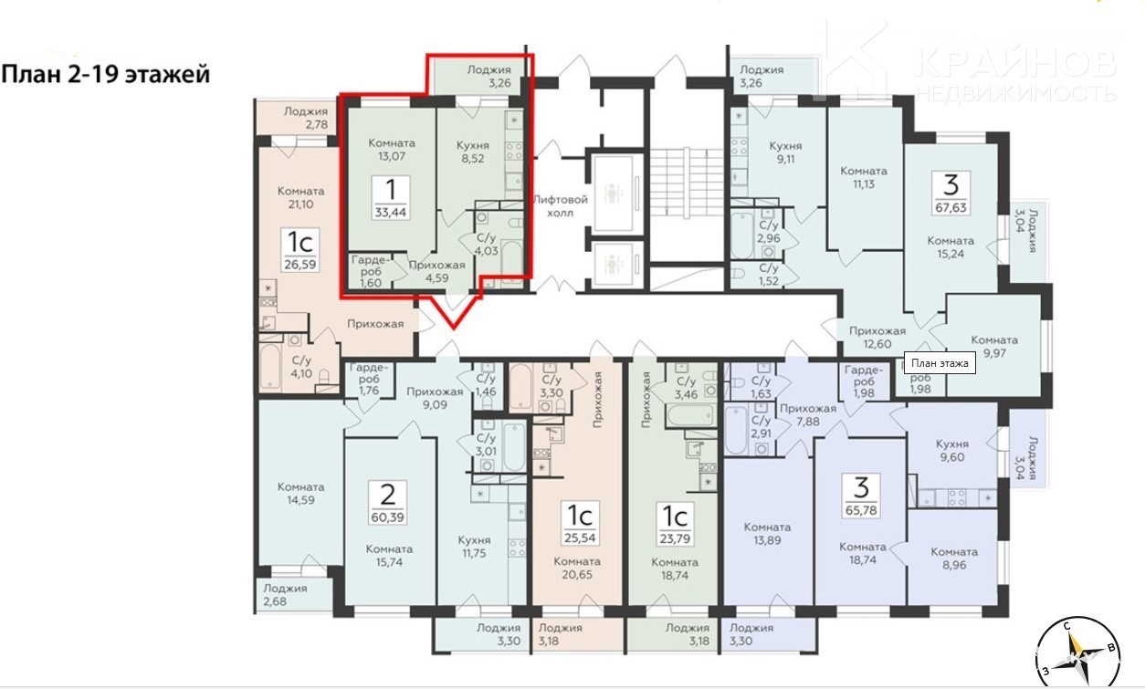 Общая площадь 33, 44 м2
