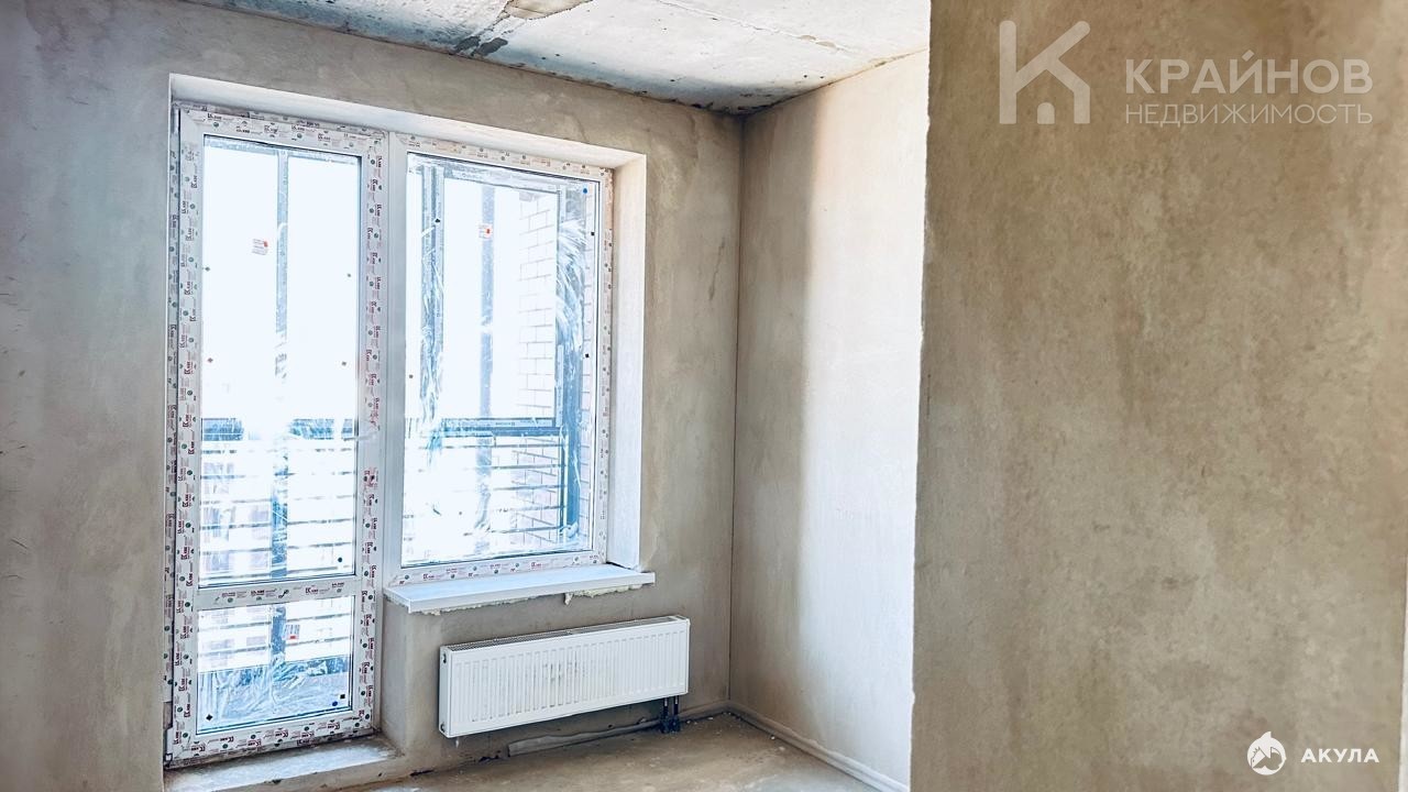 Сухая стяжка пола, простая штукатурка стен, пластиковые окна, добротная входная металлическая дверь, стояки отопления проходят в полу, что создает эффект теплого пола в отопительный сезон, смонтированы стояки холодного и горячего водоснабжения, установлены счетчики воды, электричество введено в квартиру до щитка, установлен домофон.