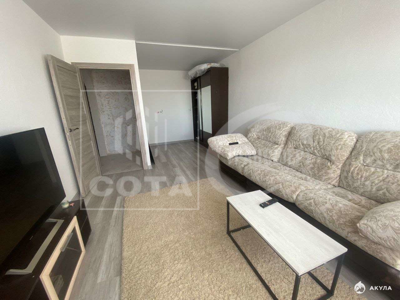 В стоимость квартиры входит мебель и техника: кухонный гарнитур, шкаф, диван, стиральная машина, холодильник, тумба под телевизор.