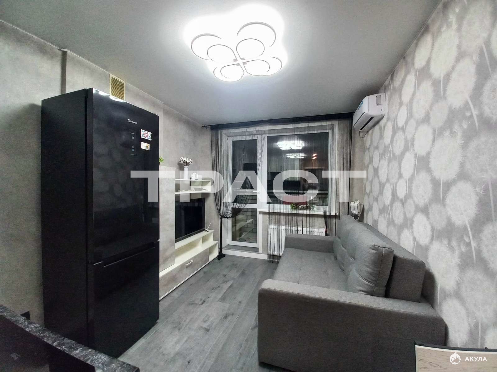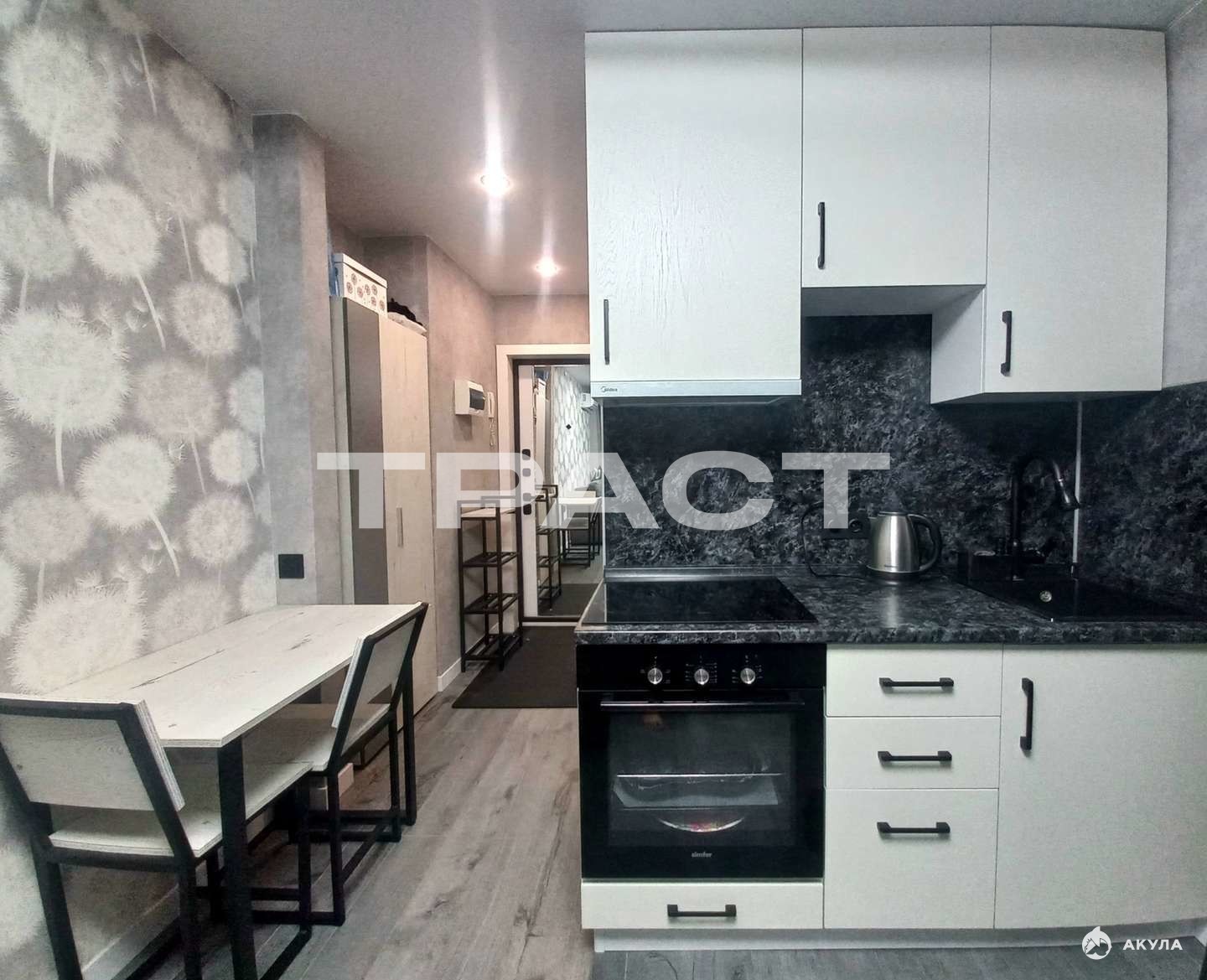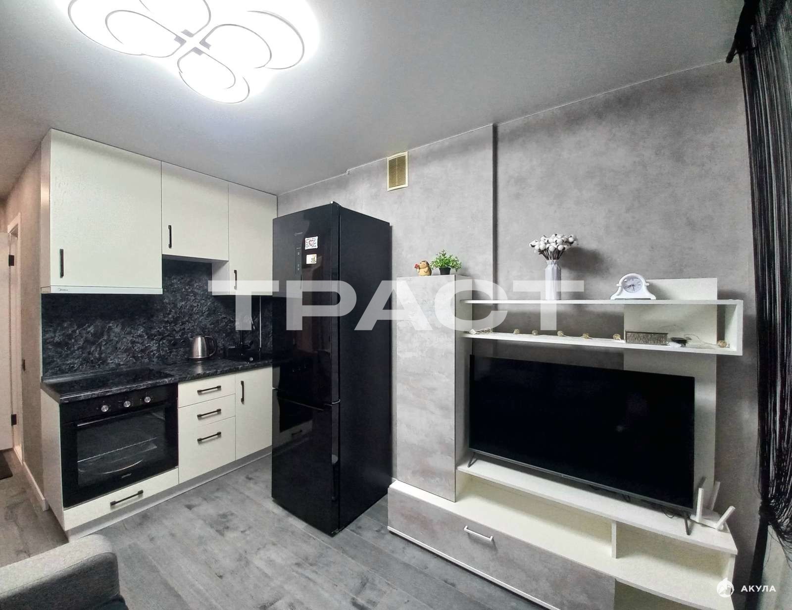 Квартира уже оборудована всем необходимым для проживания: встраиваемой техникой и мебелью.
