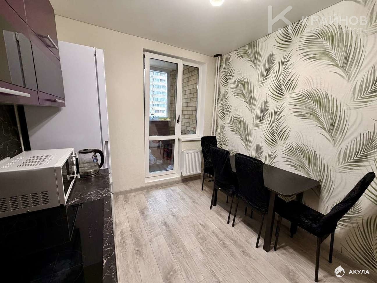 выход на лоджию через кухню — идеальное место для утреннего кофе или рабочей зоны,