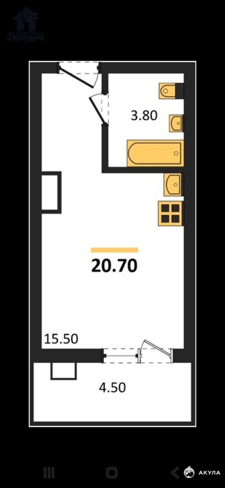 - 15.50 м²