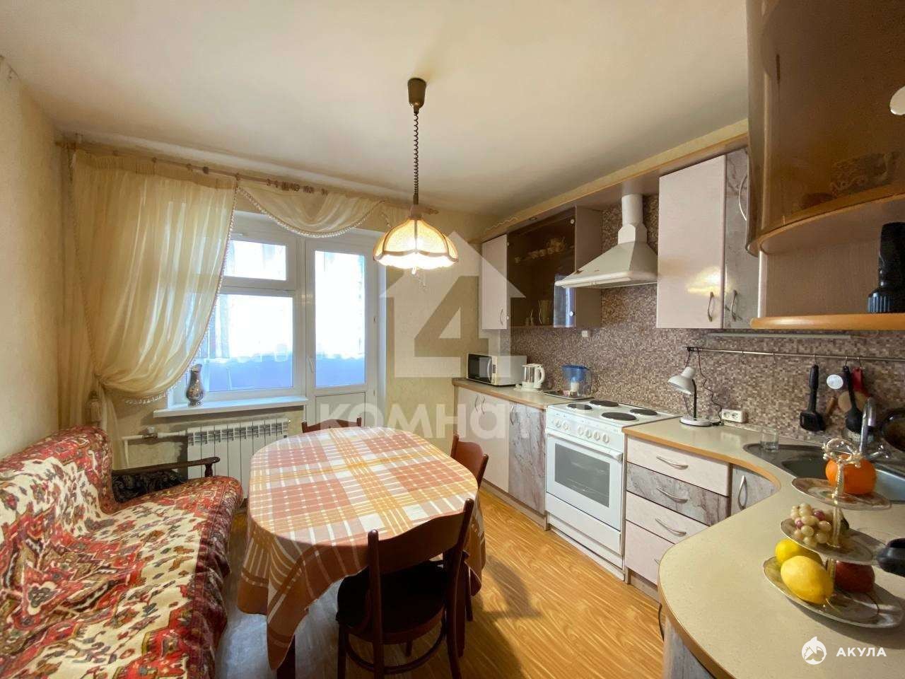 Удобная планировка квартиры позволяет разделить комнату на зону отдыха и гостевую. Просторная кухня правильной квадратной формы позволяет функционально обустроить пространство, выход на большую застекленную лоджию. В прихожей есть пространство под гардеробную/кладовую. Санузел совмещенный, отделан плиткой, установлен бойлер, что обеспечивает бесперебойное горячее водоснабжение.