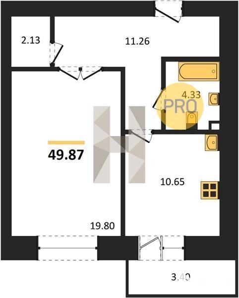 Общая площадь: 49, 87 кв.м. Жилая площадь: 19, 8 кв.м. Площадь кухни: 10, 65 кв.м. Высота потолков составляет 2, 68 метра, что добавляет пространству воздуха и света.
