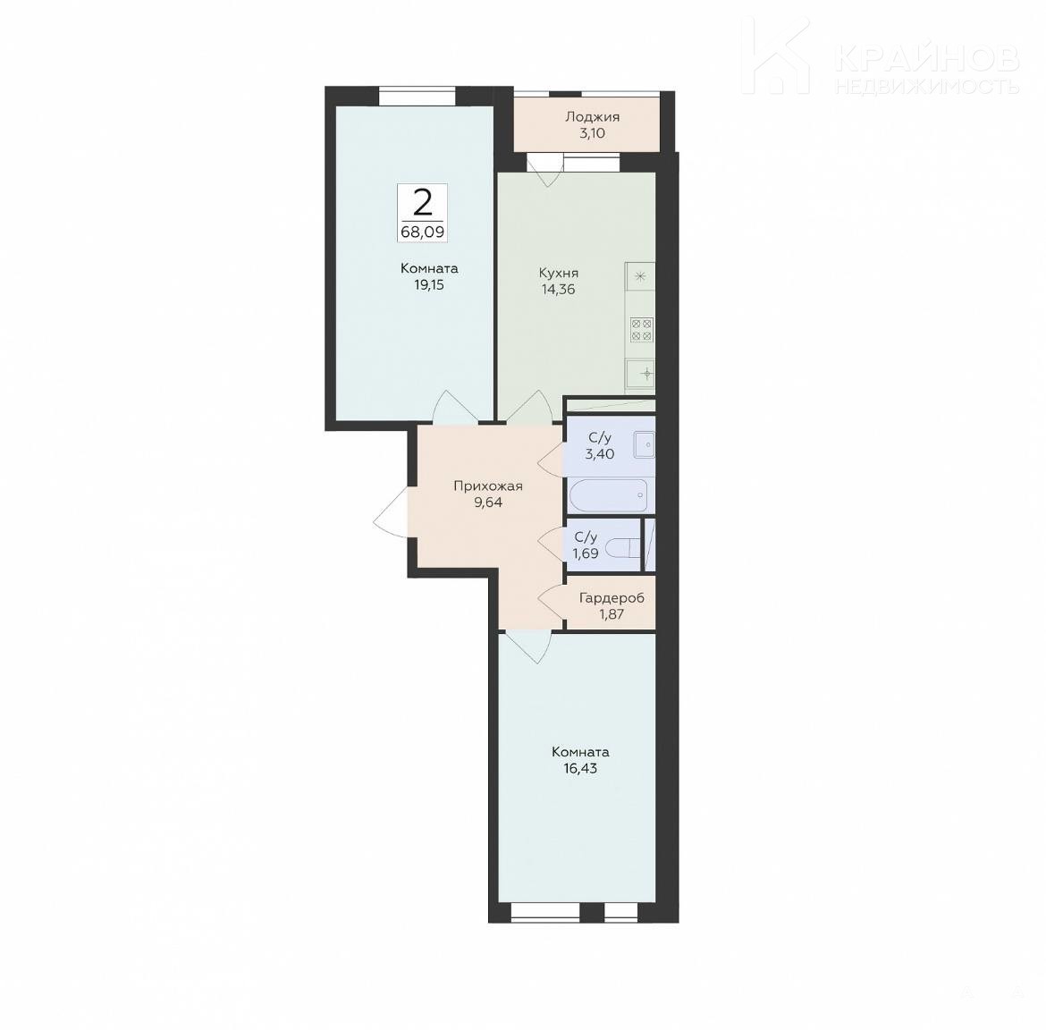 - 68 м²