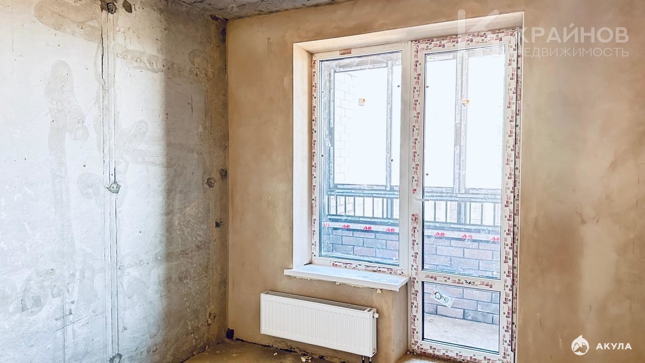 Черновая отделка (стяжка пола, вывод электрики в коридор, входная металлическая дверь, стеклопакеты и радиаторы отопления).
