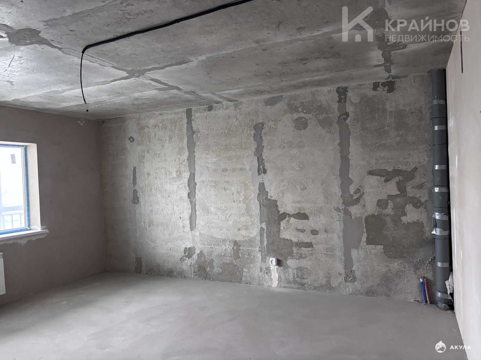 Выполнена стяжка, зашумлены стояки канализации.