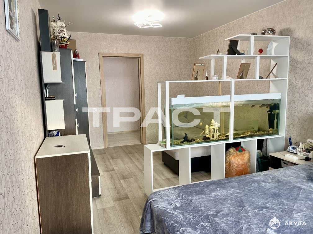 тумбочками, стеллаж с аквариумом, в детской - спальный гарнитур с навесными шкафчиками и письменным столом.