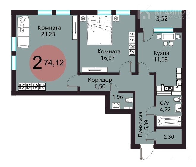 - 11.69 м²