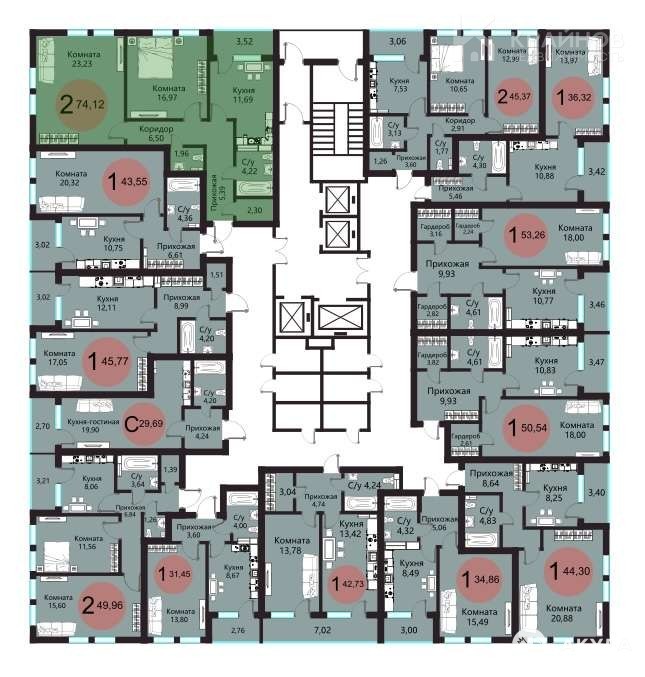 - 74 м²
