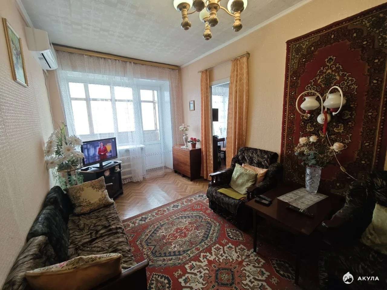 Удовлетворительное жилое состояние, хорошие пластиковые окна, кондиционер, балкон застеклен, квартира не угловая.