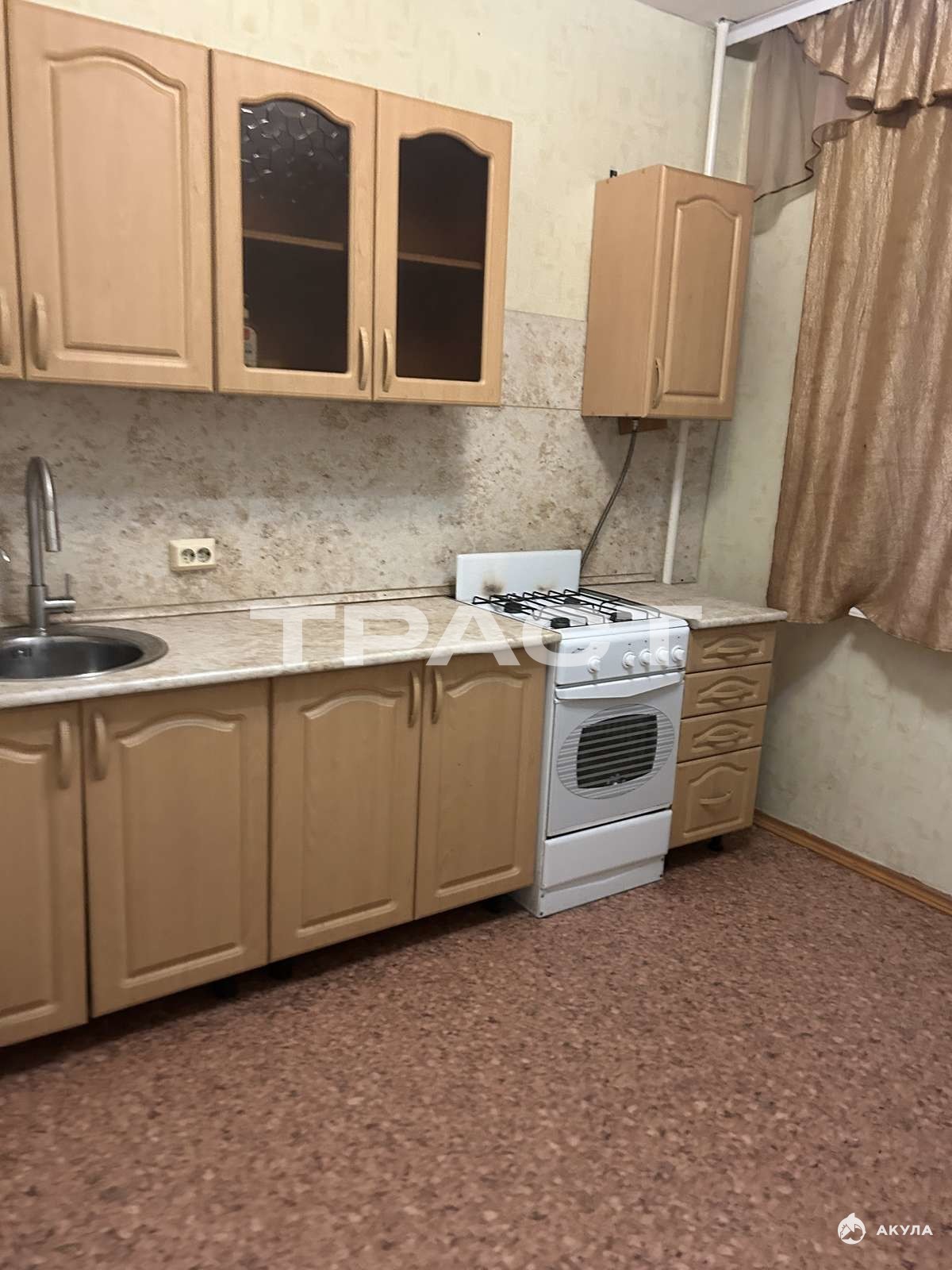 Остается мебель в зале, стиральная машина, кухонный гарнитур.