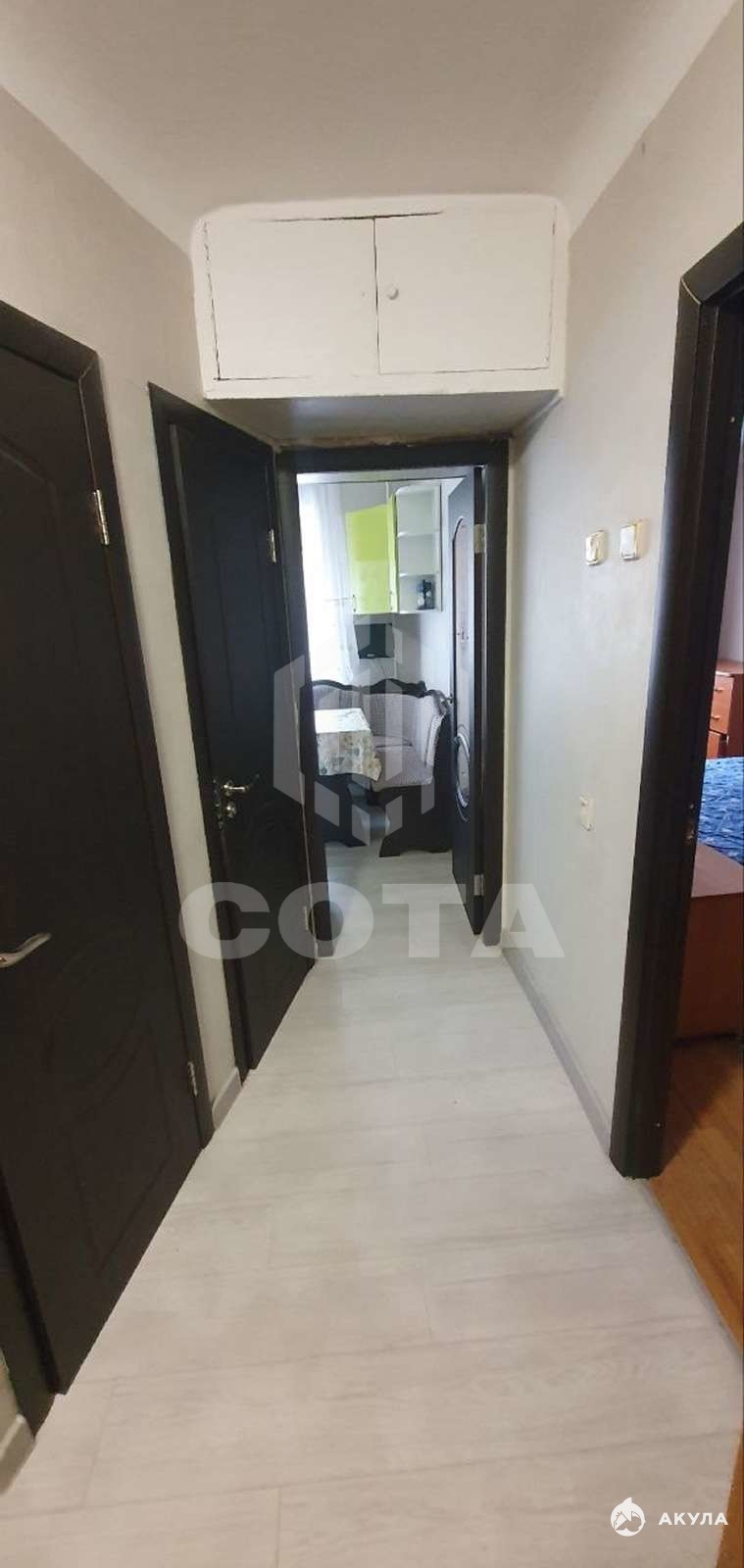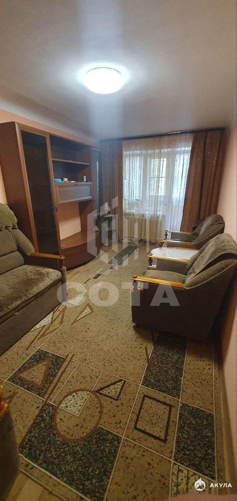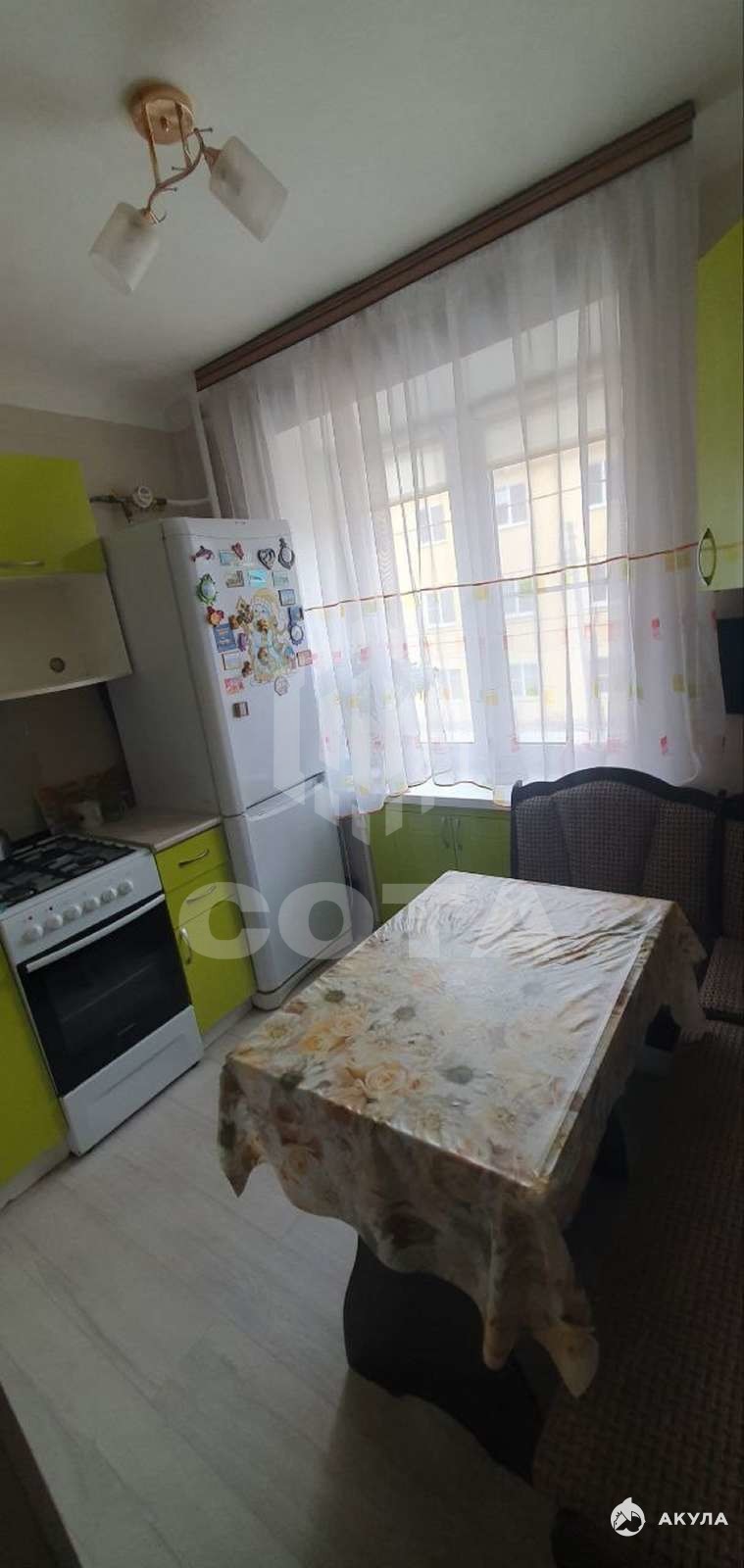 Состояние полностью жилое, 3 года назад сделан косметический ремонт: окна заменены на пластиковые, в том числе и балконный блок, входная дверь металлическая, на полу в комнатах - линолеум, на кухне и в коридоре - ламинат, туалет и ванная полностью в плитке, сантехника в хорошем состоянии. Установлены автоматическая газовая колонка и кондиционер. Счетчики на электричество, газ и воду.