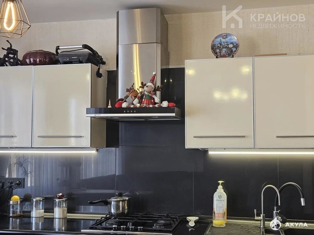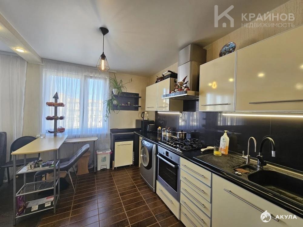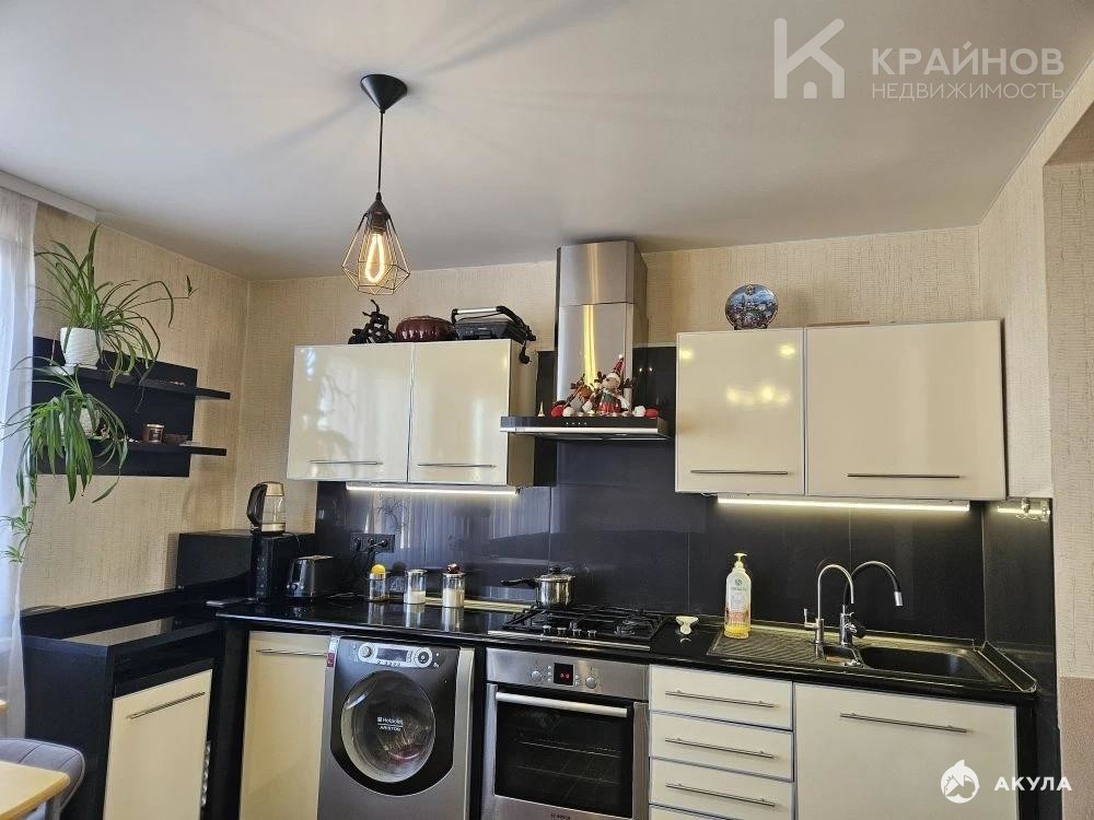 Хорошая, современная кухня, со встроенным духовым шкафом, варочной панелью, стиральной машиной.