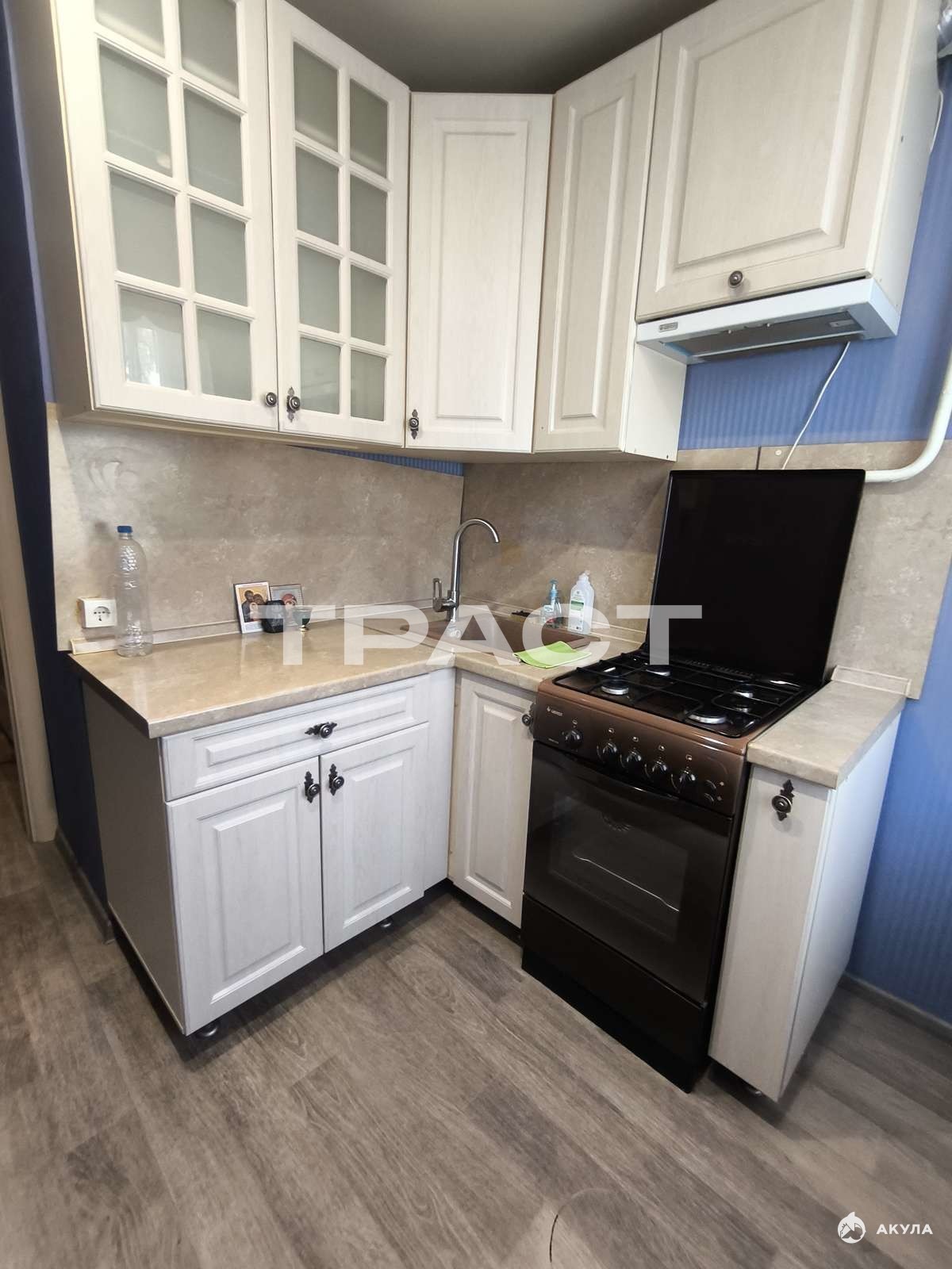 Кухонный гарнитур и шкаф-купе остаются в подарок покупателю.