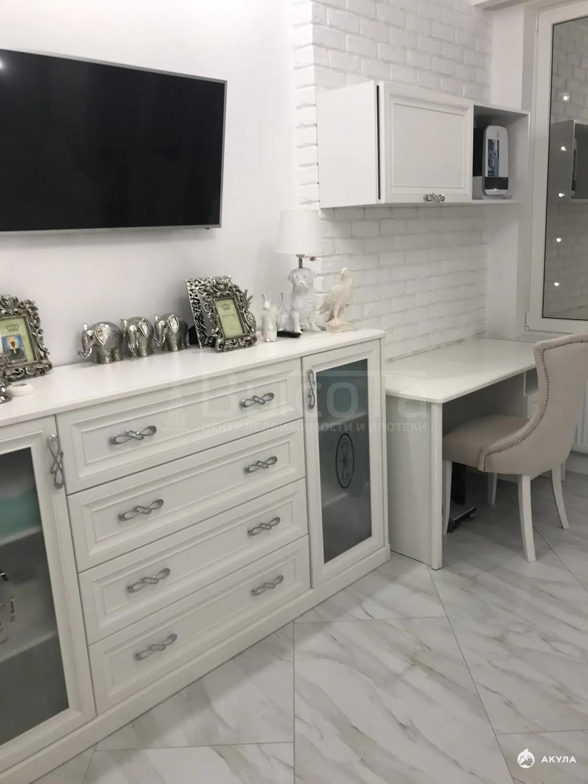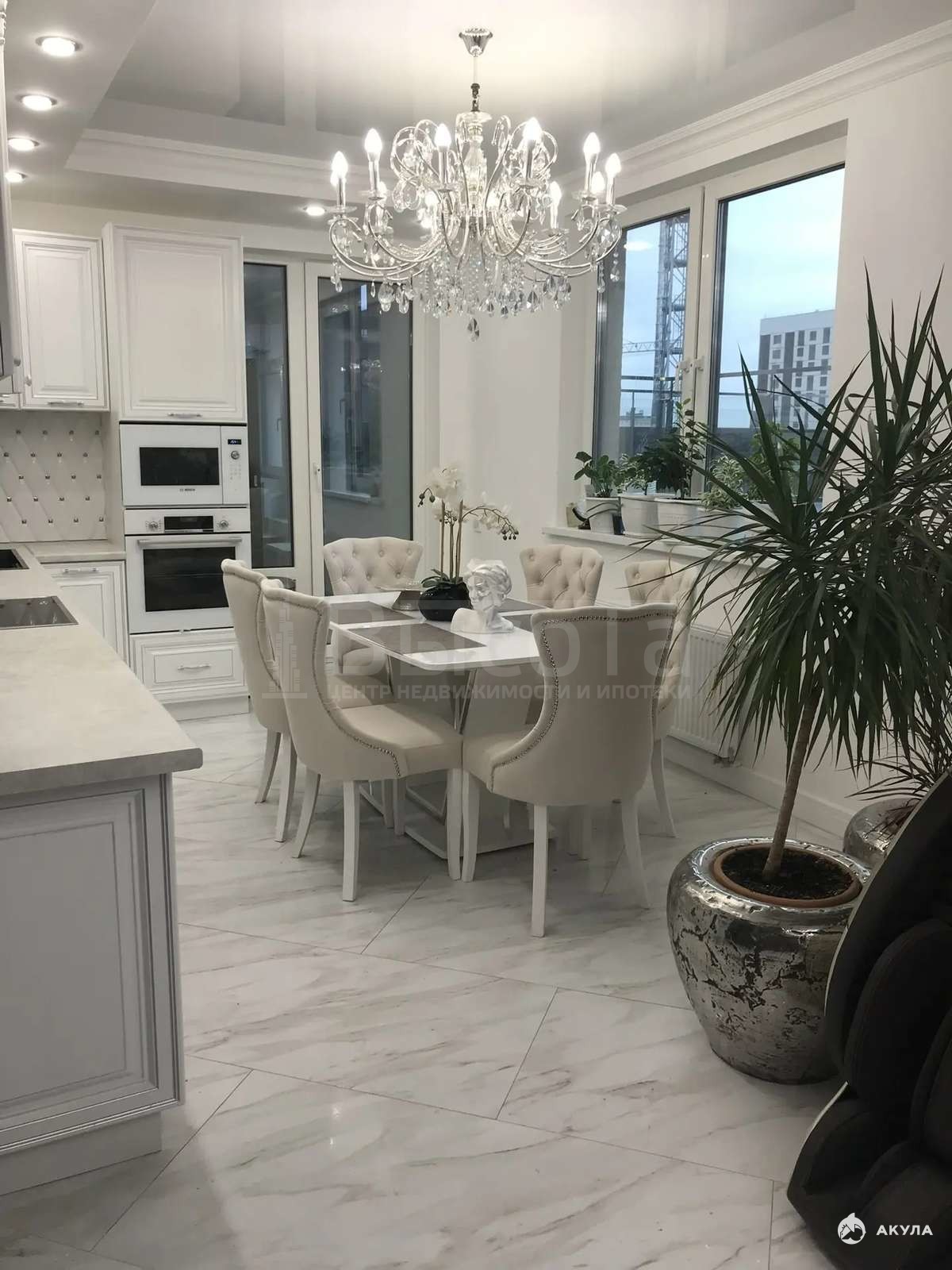 Полностью оборудованная кухня Bosch, три кондиционера, новые шкафы, на полу индийский керамогранит, подчеркивающий статус владельца.