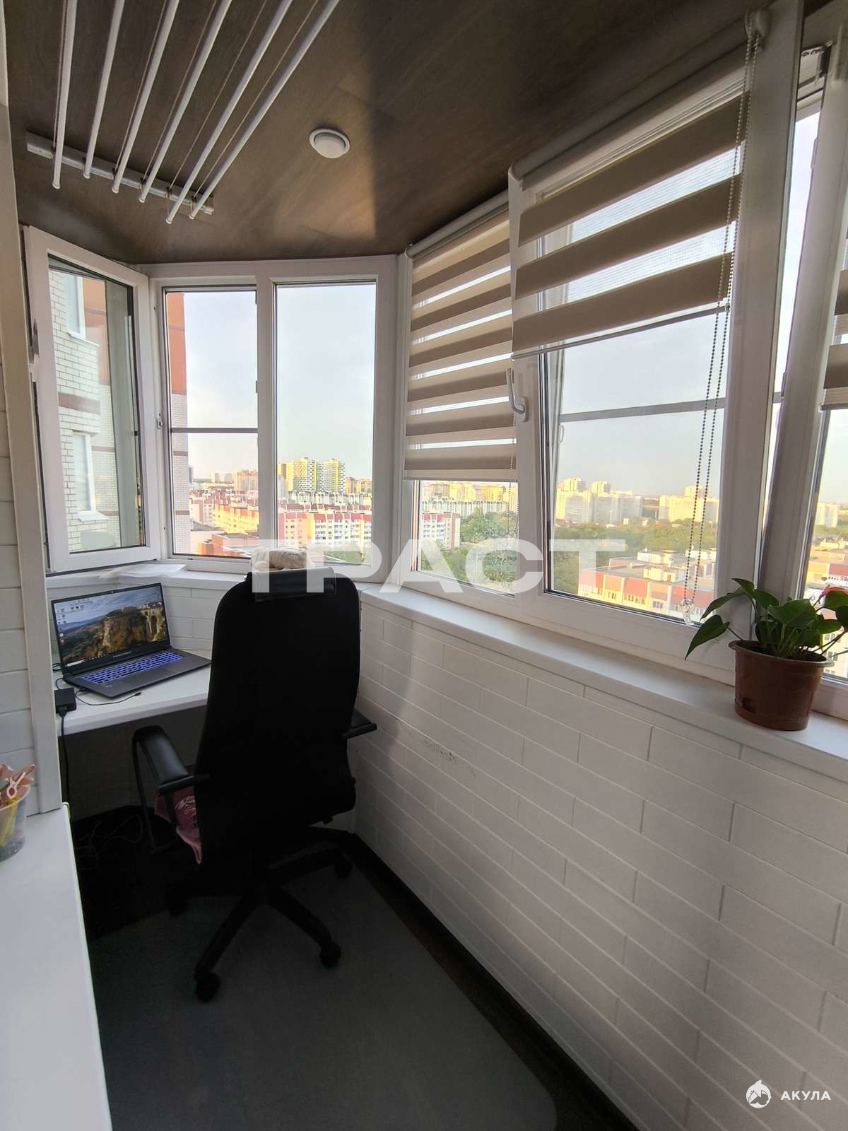 Балкон, откуда открывается красивый вид на город, отделан современными материалами и стильно смотрится.